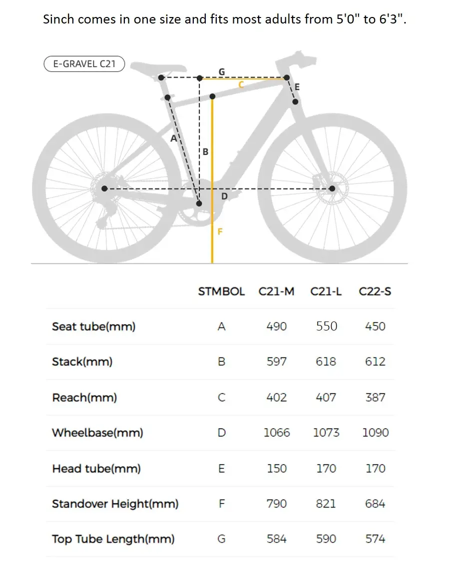 - - Recommended rider heights (M) : 5’2 (160 cm) – 5’7 (175 cm)