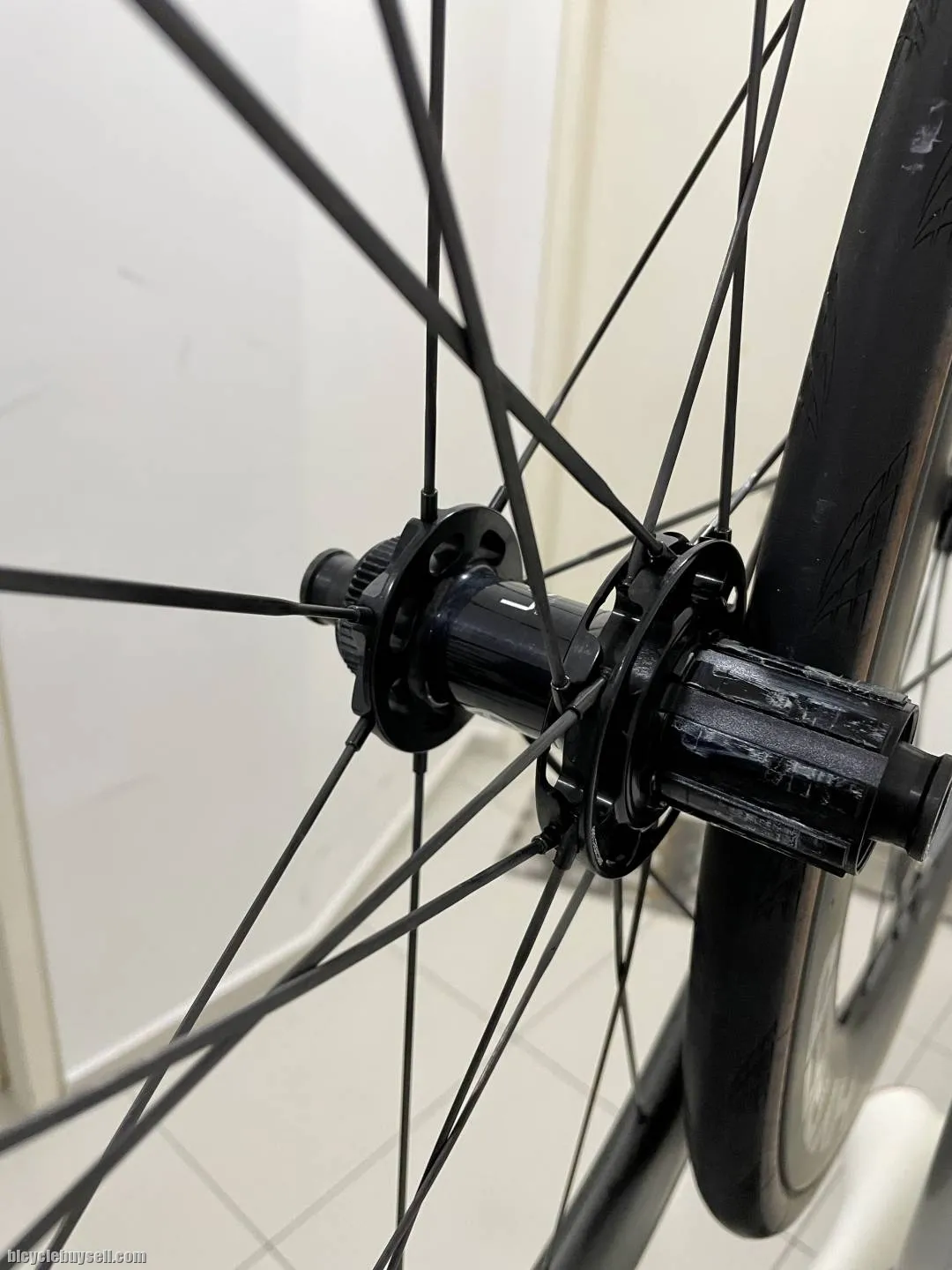 -Wheel Model: Hyper -Spokes: carbon fiber -Rim: bow appearance, 26mm outer width -Profile/height: 65mm -Bearing: Imported ceramic bearing -Disc/rim: disc brake -Maximum tire width: 30C , compatible with tubeless tires -Spoke arrangement: front 21 (2:1), rear 21 (2:1) -Thru axle size: front 100*12mm, rear 142*12mm -Accessories: tubeless valve, valve extension nozzle, spare carbon spokes -Shimano freewheel hub -Weight: 1584 grams -Condition: 98%. Bearings just recently serviced. See to believe. Free 2 pairs of Continental GP5000 tanned wall (25mm) with inner tubes, as per photos, worth RM 470.