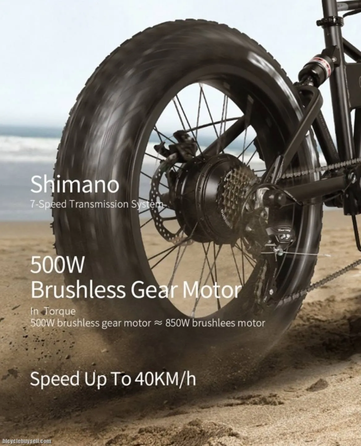 Tire size: 20" Pneumatic fat tires
