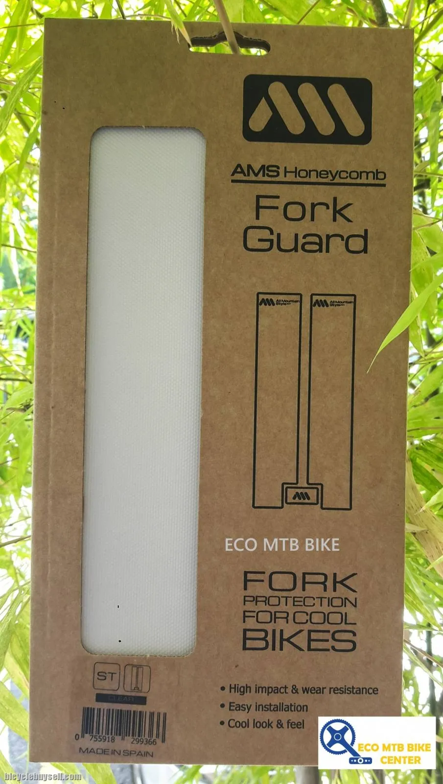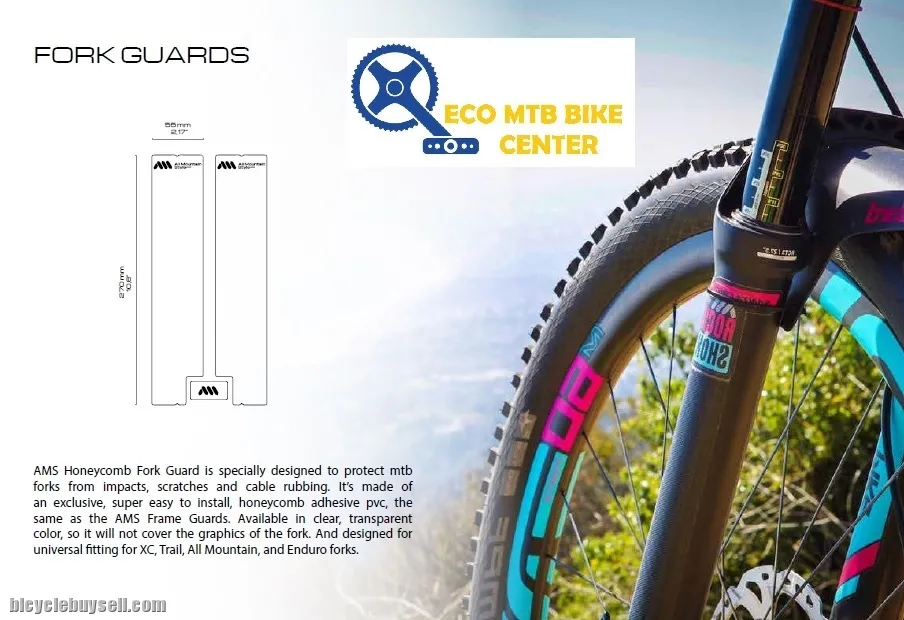 ~ CLEAR, AMS Honeycomb FORK Guard is specially designed to protect mtb forks from impacts, scratches and cable rubbing. It's made of an exclusive, super easy to install, honeycomb adhesive pvc, the same as our successful Frame Guards, in CLEAR, transparent color, so it won't cover the graphics of your cool fork.