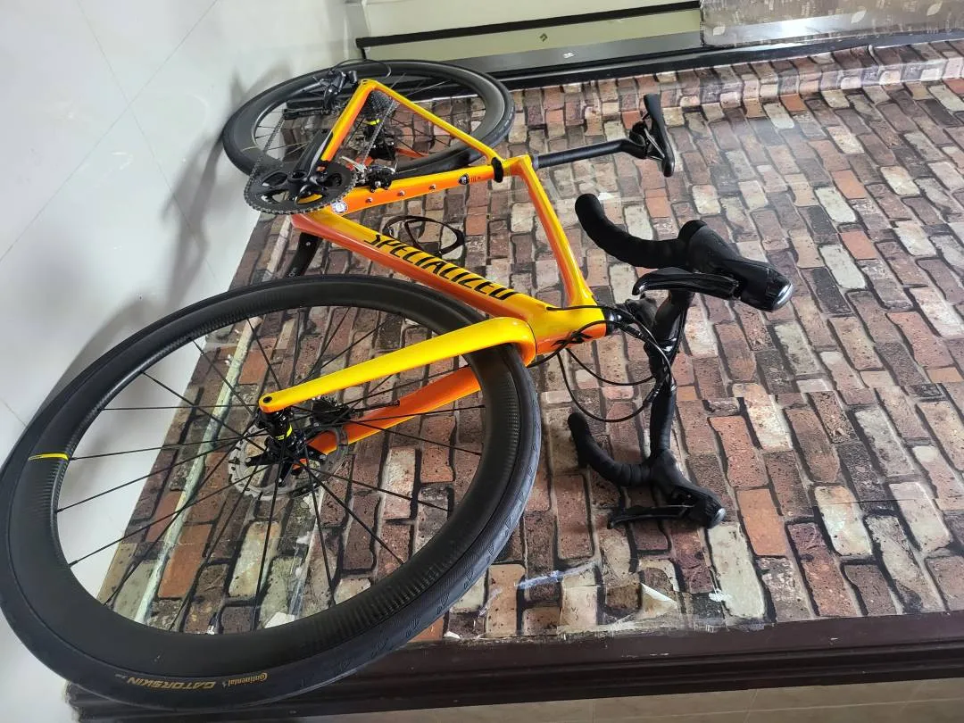 SPECIALIZED PARIS ROUBAIX CHAMPION SPORT frame carbon fact 10r fork-carbon future shock 1.5w front derailleur shimano Ultegra rear derailleur shimano Ultegra long cage 11s shift levers shimano RS-505 DISC brakes frt/rear shimano 505 flat mount HYD resin pad with fins cassette 105 11s,11-32t chain kmc x11,11speed crank praxis works 50/34t seatpost specialized CG-R,fact carbon ********************************* very minor scratches from learning on the wall very low mileage ,almost like showroom condition very well maintained all spare components like spring spacers ,headset cover ,manual book all included . ******************,**, Upgraded- With Mavic carbon disc SL45 wheelset & Hub 2new continental Gatorskin tyre for easy ride Price Is nego 0164488988 price nego for serious buyer can arrange for shipping (price not included shipping) watapp 0164488988 can view the spec fr specialized as below : https://www.specialized.com/us/en/roubaix-comp/p/115635
