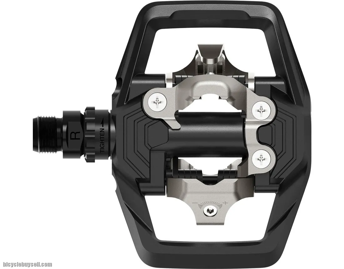 Wide, dual-sided platform improves pedal-to-shoe stability and power transfer