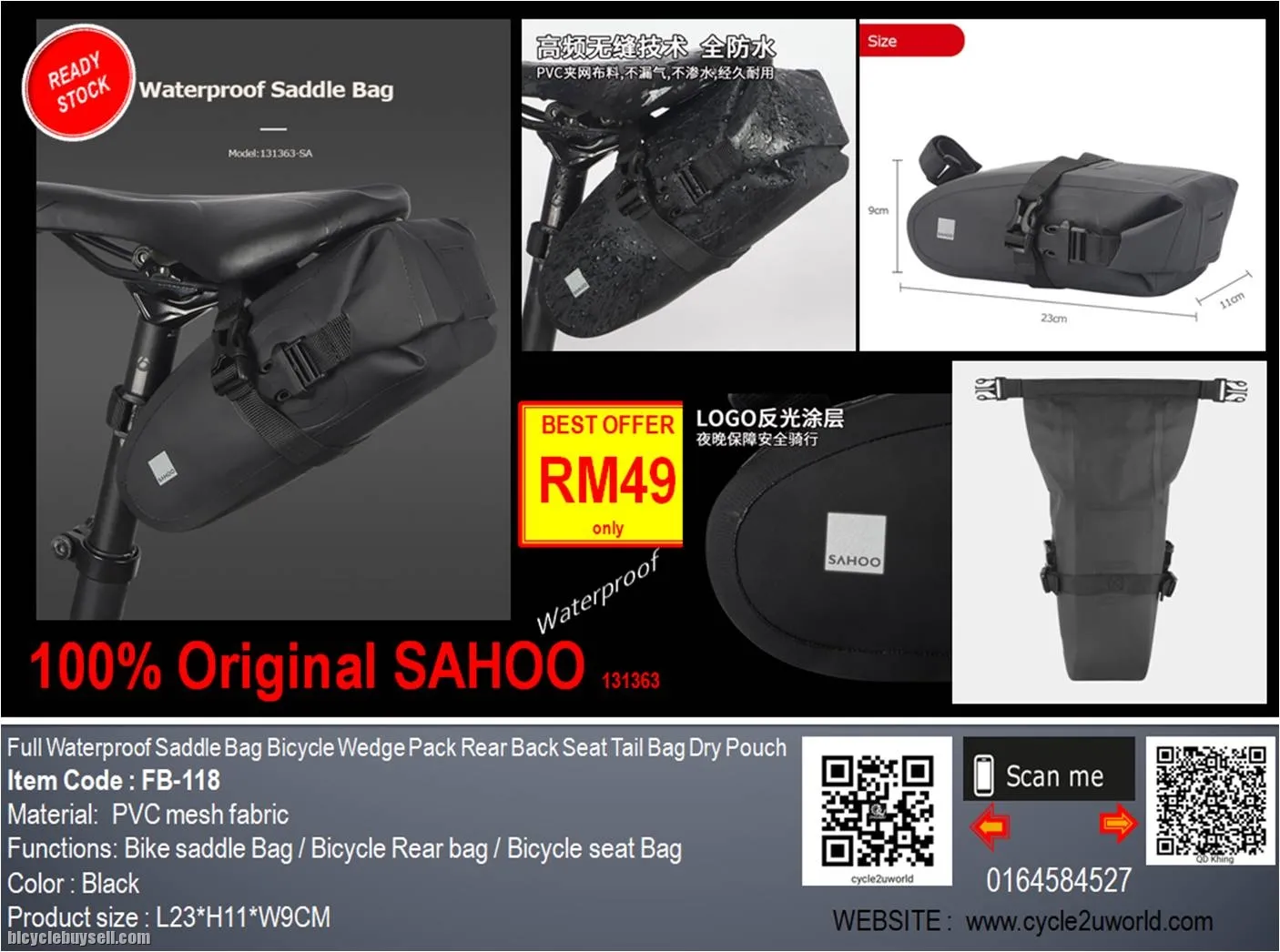 ORIGINAL SAHOO Full Waterproof Saddle Bag