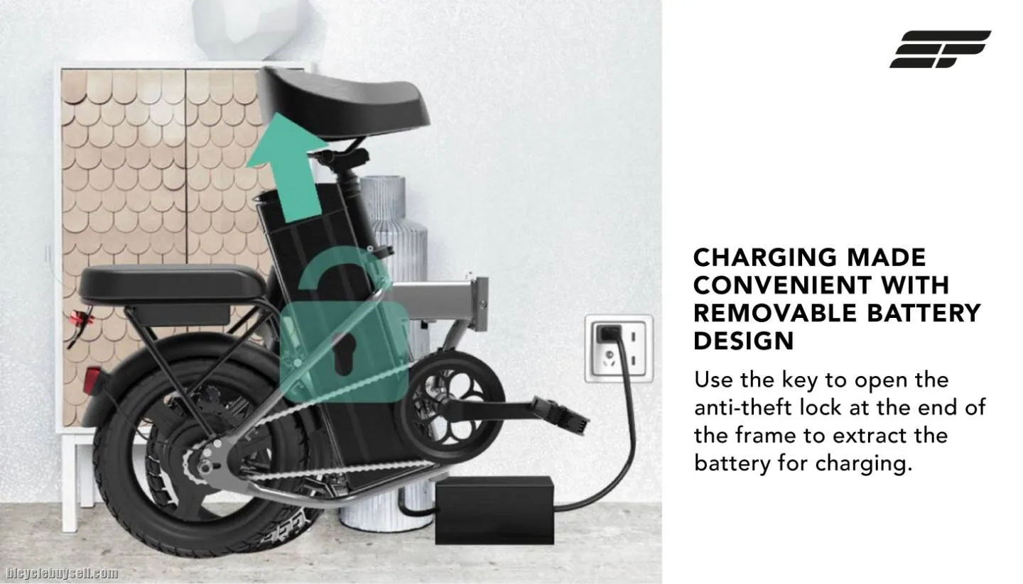 - 14″ wheels, disc brakes, and a detachable 8AH/15AH li-ion battery.