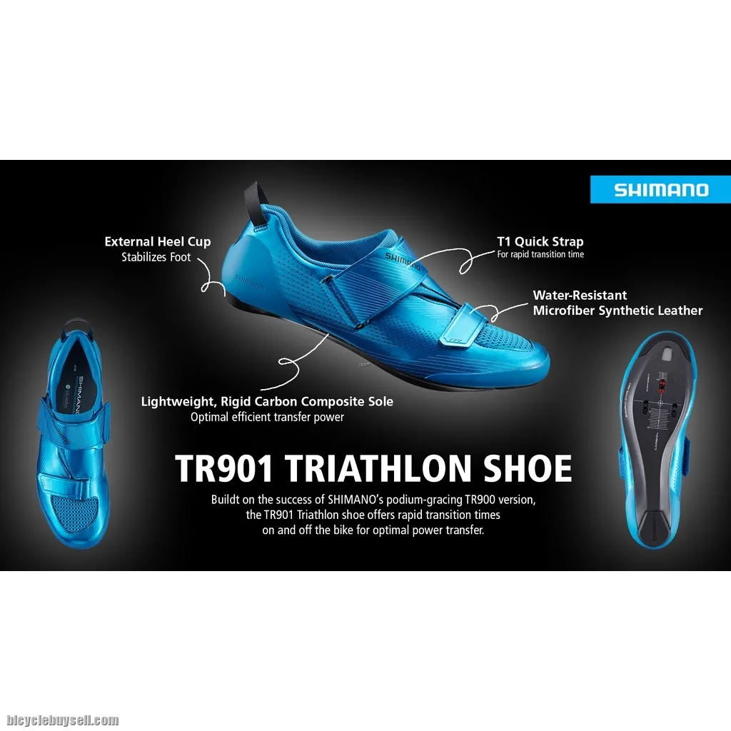 T1-Quick strap and extra-wide upper opening simplifies and quickens transitions. Lightweight, rigid carbon fiber composite sole efficiently transfers power. Water-resistant microfiber synthetic leather with strategic venting. Breathable 3D mesh breathes great and dries fast. External heel cup stabilizes heel. Large heel loop is easier to grab to quickly secure the shoe during transitions. TR9 SH-TR901 PRO TRI RACING SHOE DESIGNED TO SHORTEN TRANSITIONS AND OPTIMIZE POWER TRANSFER. MODEL NO SH-TR901 SERIES SHIMANO Model year 2020 Line up year 2023 Gender Men's Segment/Category ROAD/Triathlon Product name TR9 Color Black Pearl, Blue Size Standard: 36, 37-47 in half sizes, 48,49,50 Cleat type SPD-SL Last type SHIMANO DYNALAST Stiffness index 10 Best match pedal PD-R9100 Features_Wider cleat adjustment range ✔ Features_External heel cup ✔ Features_Carbon sole/Mid sole ✔ Technology_SHIMANO DYNALAST ✔ Technology_Silvadur® ✔ Closure Quick strap Upper Material Microfiber synthetic leather+Mesh Outsole Material Carbon fiber composite Standard insole High density cup insole with adaptable arch pads Men's Actual weight (Size: 42) 230 g 🔥Pre order 7-9 working days Deliver to Malaysia, SG, Brunei, Worldwide Accept Ewallet Boost TouchnGo Etc.. & Credit card How to Order 1.Product Option: 2.Quantity: 3.Color: 4.Name: 5.Address: 6.Contact number: Send to ☎FB http://m.me/icebikeheaven ☎ http://www.wasap.my/60174204398 Sales, Order, Customer service ☎ http://www.wasap.my/60195272398 After sales/ Warranty FOLLOW US ✔ https://www.ebay.com/str/icebikeheaven37 ✔ https://shopee.com.my/icebikeheaven?tab=shop ✔ http://www.lazada.com.my/ice-bike-heaven/ ✔ https://fb.me/icebikeheaven ✔ https://www.instagram.com/icebikeheaven37/ Buy from Us! 🚴🏻💯% POSITIVE FEEDBACK 🚴🏻💯% Warranty & After Sale Service 🚴🏻💯% PARCEL ARRIVAL GUARANTEED 🚴🏻💯% ❌hidden charges 🚴🏻 7️⃣ days size exchange 🆗 🚴🏻 7️⃣ days 100% 💲💲 Guarantee back ☄ Prompt response 🥇♞ SSM Registered company- Icebikeheaven 🥇 8 Years of experience