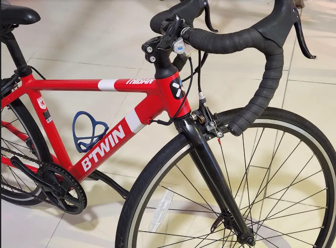 The B'Twin junior road bike with 26" wheels, aluminium frame, 6 Shimano speeds and a double braking system to enable the rider to easily adapt their position using the road handlebars.