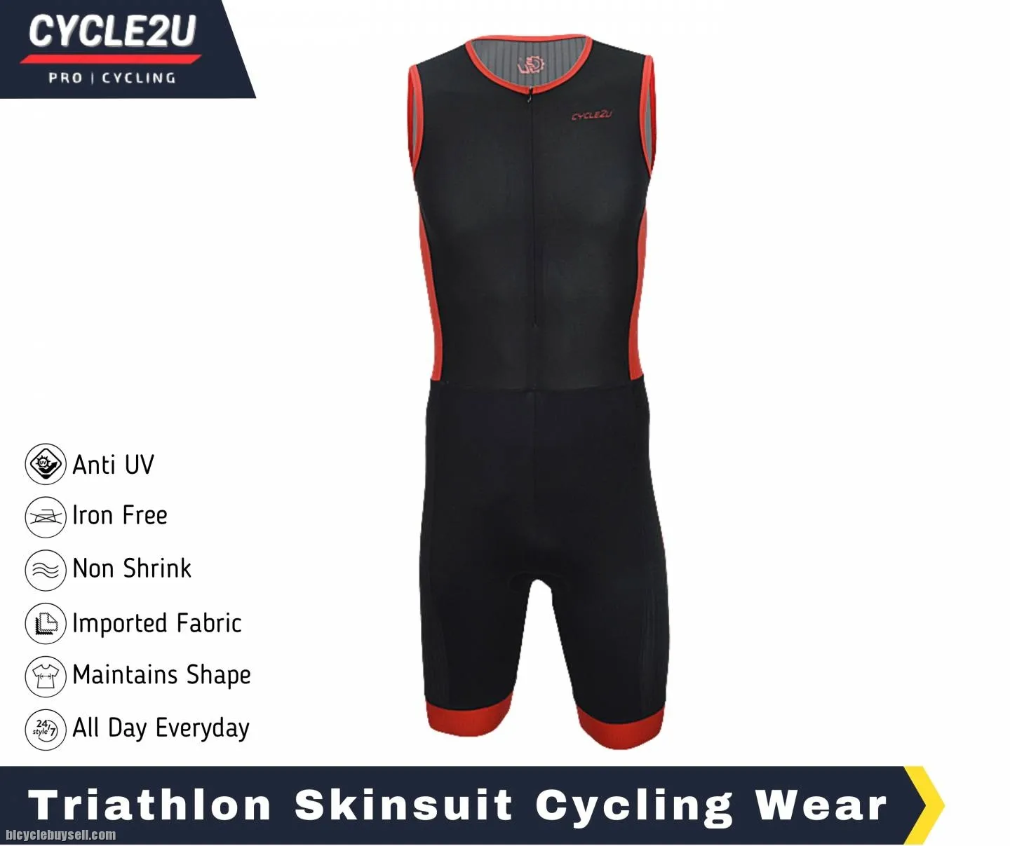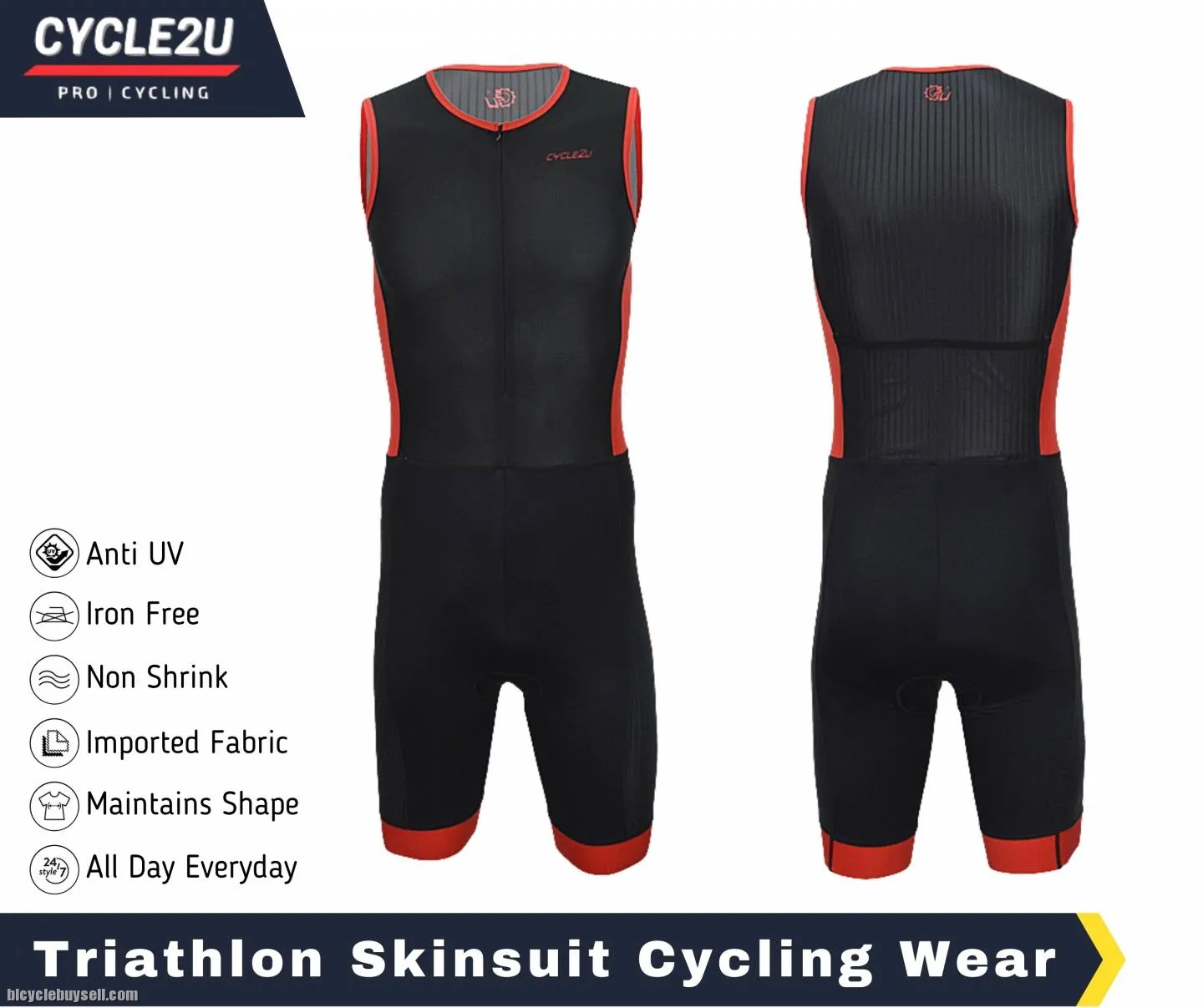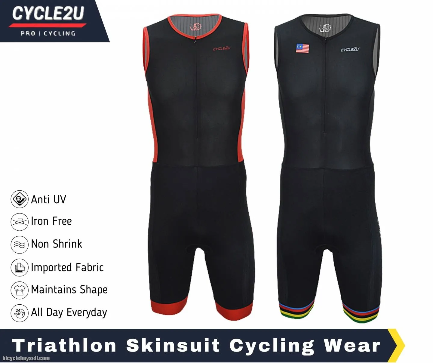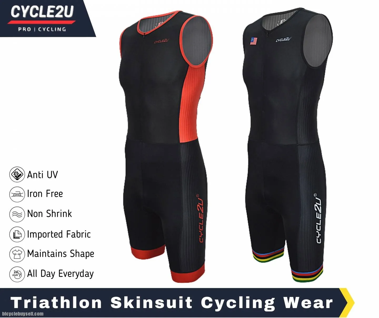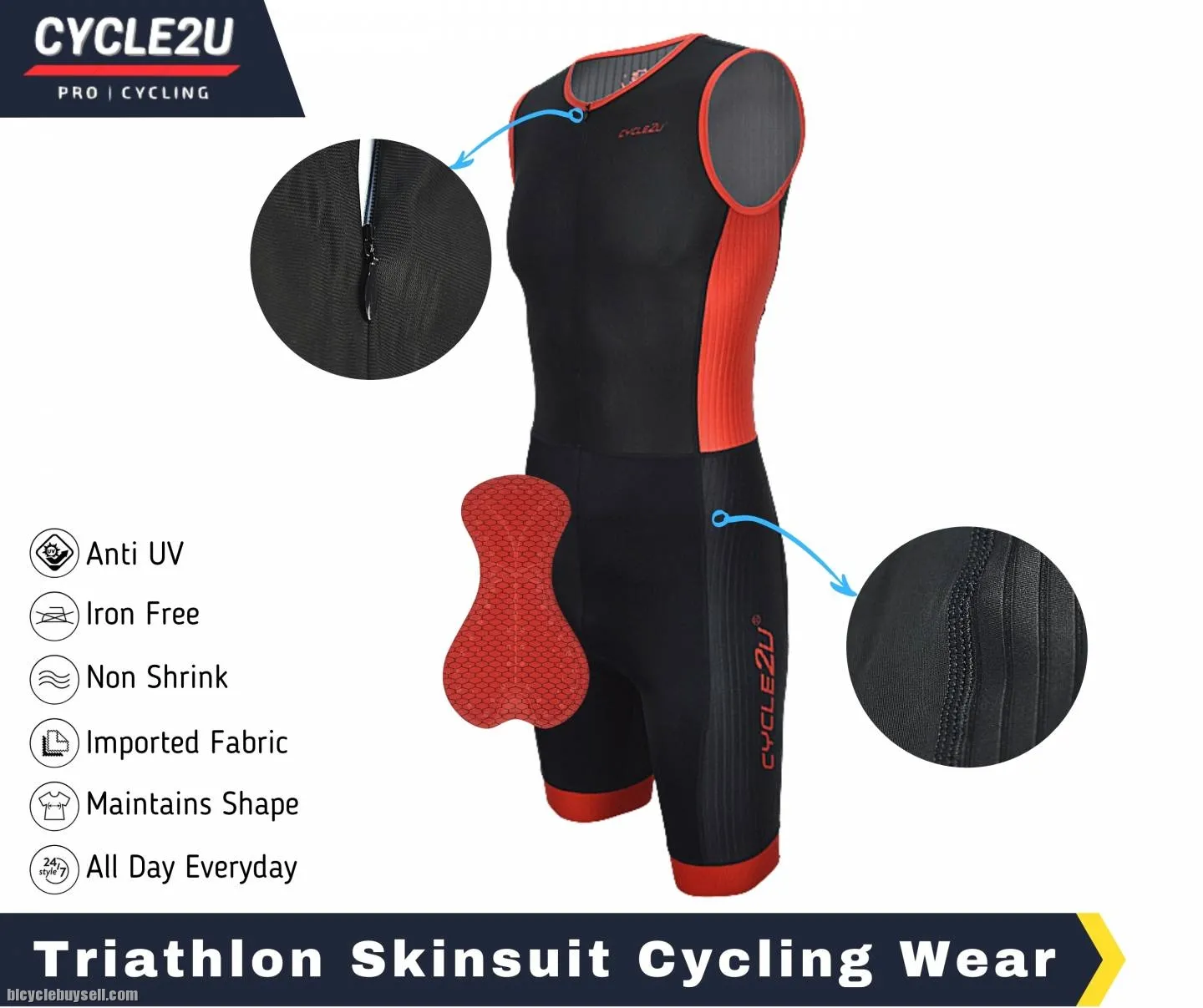Original CYCLE2U Triathlon Sport cycling compression Trisuit with Front YKK Zipper
