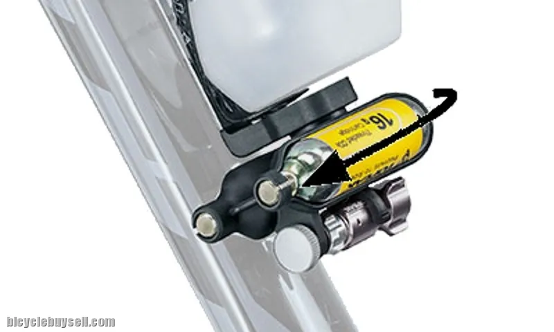 The Topeak Ninja CO2 Plus Bottle Cage is ready to spring into action when needed and is the ultimate quick fix. Including the Micro AirBooster & 2 threaded 16g CO2 cartridges make fixing flats easy with quick access by a simple twist.