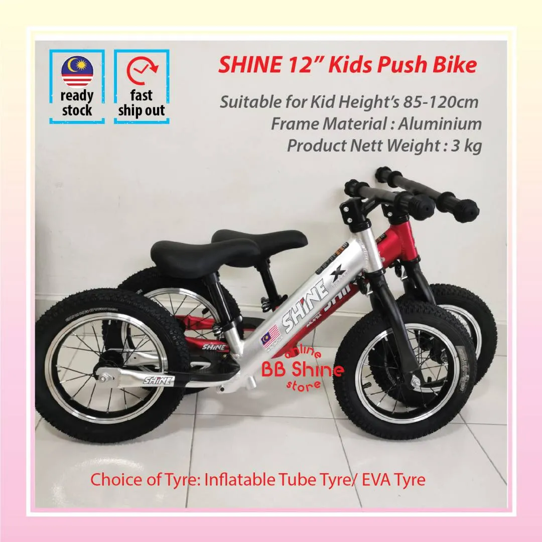 SHOPEE LINK : https://shopee.com.my/Shine-12-Push-Bike-Balance-Bike-(Aluminium-frame-lightweight)-i.53961976.7637692159?sp_atk=d2718b0c-5bc2-4c28-a5a5-36cb00e0b0f1 Limited ready stocks available now!!! Unbelievable Lowest Introductory Price!! More affordable, save more money! With Adjustable Seat Post & Handle Bar, good for# toddler age 2.5 - 5 years old or up to 35 kg.# Suggested kid height: 90-120cm Bike net weight 2 kg lebih Available in colours : Red, Black, Orange & Blue Specifications: Padded seat Quick release clamp Inflatable Wheel Lightweight Please visit our Facebook Page for more products listed : https://m.facebook.com/mybbshine2/ ✉ To ask or buy: http://m.me/mybbshine2 📱 Whatapps us : http://mybbshine.wasap.my ................................................................ Learn to Ride! A No-Pedal Balance Bike is the perfect tool for learning to ride, teaching balance, and instilling riding skills in children. It is a ride by walking bike before they could ride on a pedal bicycle. It's so much fun besides training their legs on balancing, walking, running & cycling! Advantages of Riding a Push Bike : * Are ultra lightweight and easy to control * Increase balance, coordination, and confidence * Allow children to focus on learning balance first * Are free of chains, pedals, and protrusions that can harm a child * Provide a safe, smooth, and natural transition to a pedal bike #strider #pushbike #balancebike #kidbicycle #myfirstbike #startthemyoung