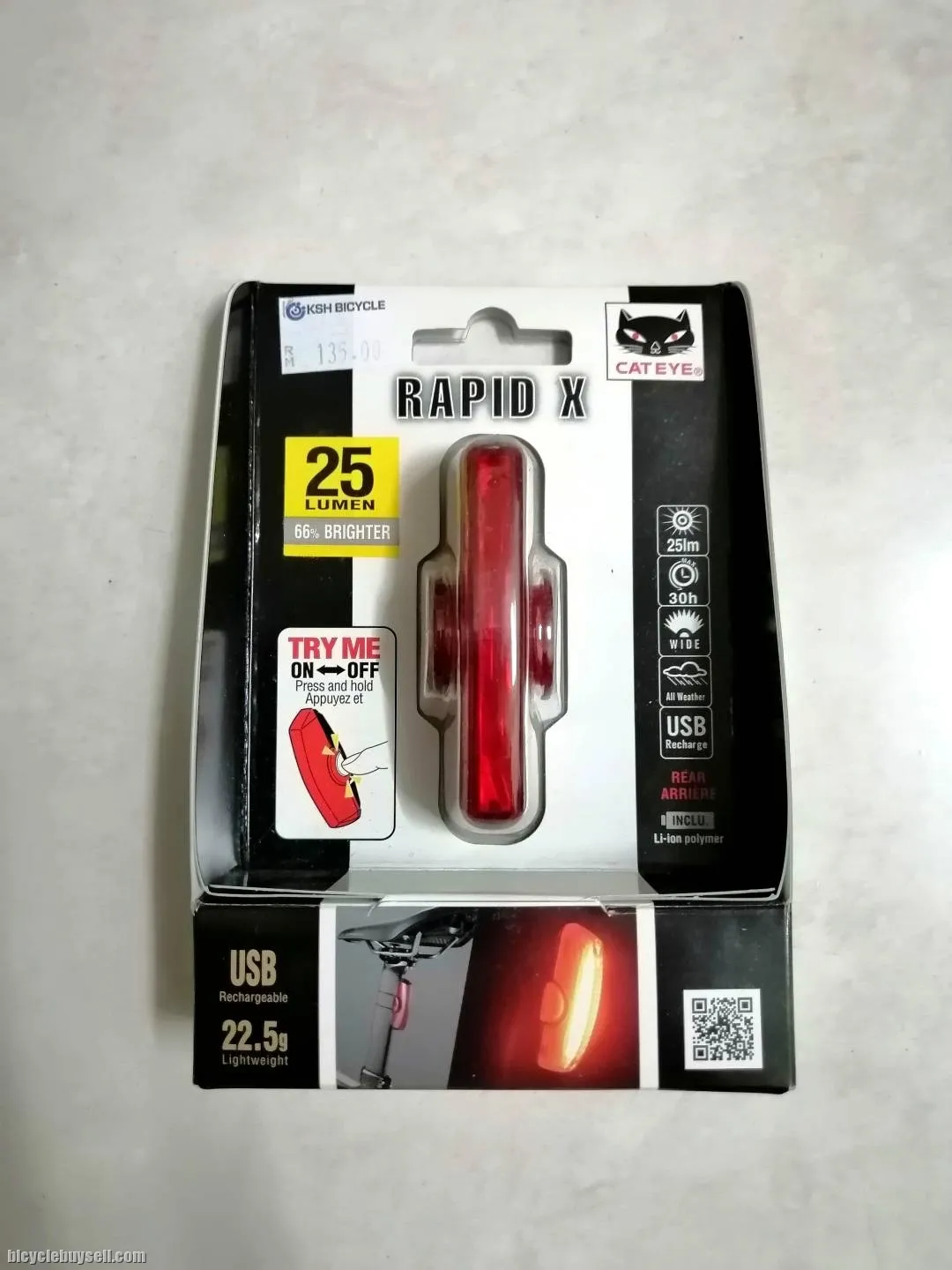 CAT EYE RAPID X USB Rechargeable Rear Light. Super Bright Light Up to 30 Hours Run Time Brand New In Box Bought As Spare Light RM110 WhatsApp 019 2172622 C.O.D Puchong or Kota Damansara Shimano, SRAM, Dura Ace, Ultegra, Etap, Zipp, Enve, Continental, Black Inc, Factor, Cervelo, Storck, BMC, Cannondale, Canyon, Look, Felt, Focus, Cinelli, Polygon, Bianchi, Pegoretti, Argon, Lapierre, Scott, De Rosa, Pinarello, Wilier, Giant, Colnago, Trek, SWorks, Specialized, S Works Tarmac SL6, Merida, Rotor, THM, Enduro, Wheels Manufacturing, Assos, Black Sheep, S-Works, Lightweight, Ceramicspeed, Campagnolo Bora WTO, Dura Ace Di2, Ultegra Di2, Venge, BMC SLR01, Cat Eye