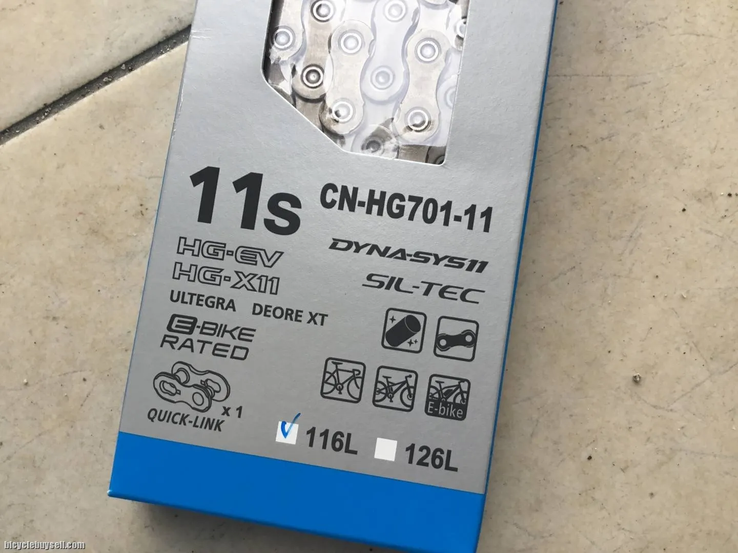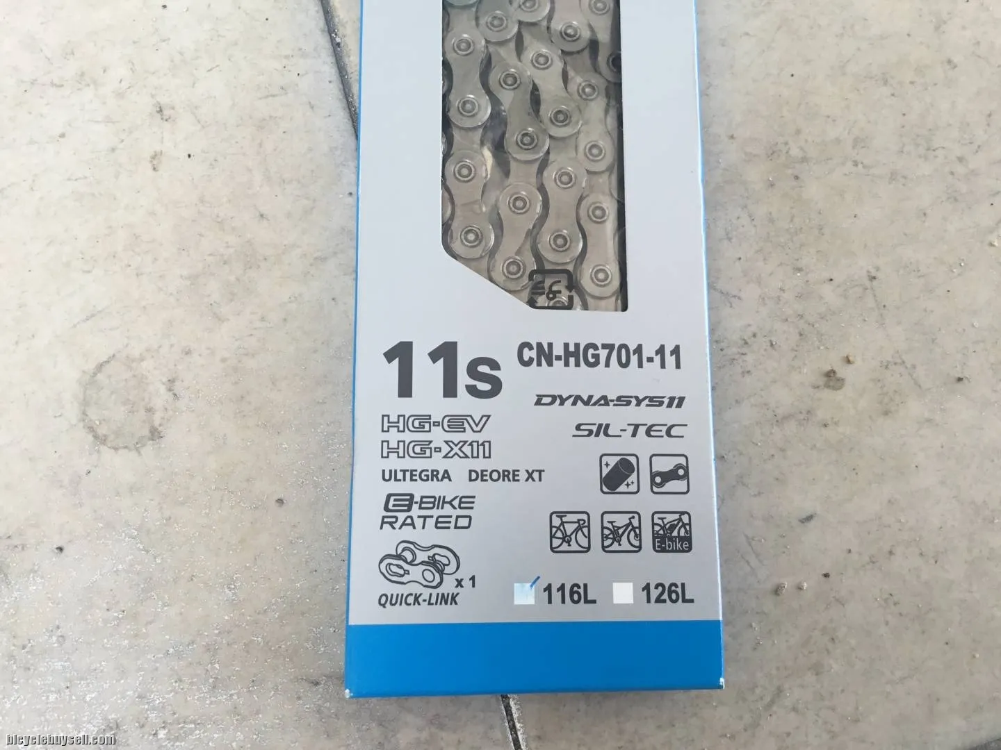 Shimano XT/Ultegra CN-HG701-11speed SHIMANO XT/Ultegra Chain - 11-Speed - Super Narrow - HYPERGLIDE - SIL-TEC -E-BIKE Chain The HG701-11 chain is directional and features SIL-TEC treatment on the roller link plate and pin link plate for increased durability. It is compatible with 11-speed road, MTB, and E-BIKES thanks to its reinforced design. Smooth and reliable shifting performance Directional 11-speed chain More efficient and silent, less maintenance SIL-TEC surface treatment MTB, Road, E-BIKE 11-speed compatible Reinforced chain for E-BIKE use New chain plate dimension Weight: 257g (114Links) Pls click details... https://bike.shimano.com/en-EU/product/component/mtb-ebike-e8000/CN-HG701-11.html Free courier. Sabah sarawak add Rm10. Tel:017-522 3693
