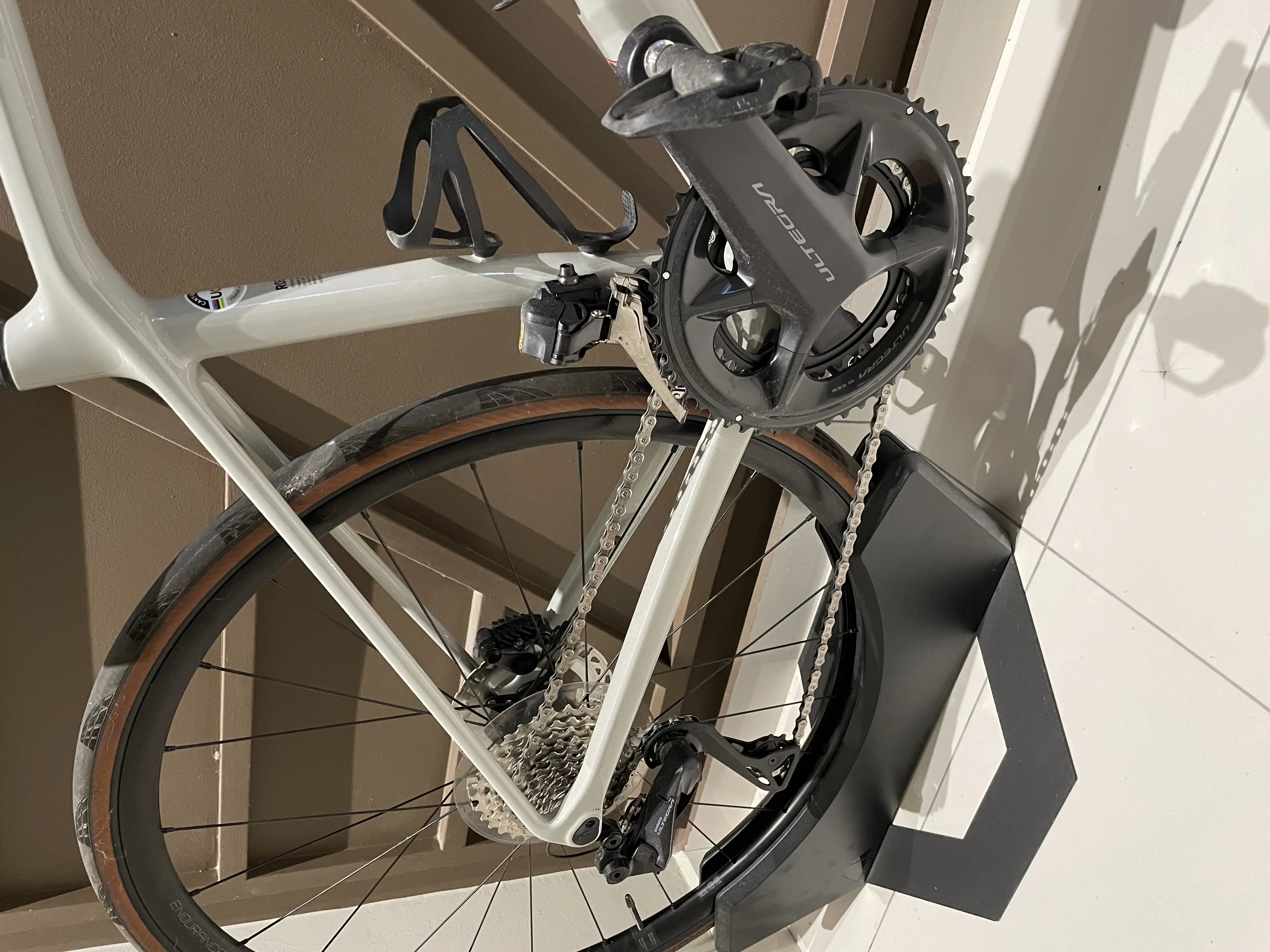 Relaxed geometry, light carbon frame, electronic shifting. The Endurace CF SL 8 Di2 with Shimano’s semi-wireless 12-speed Ultegra Di2 groupset.