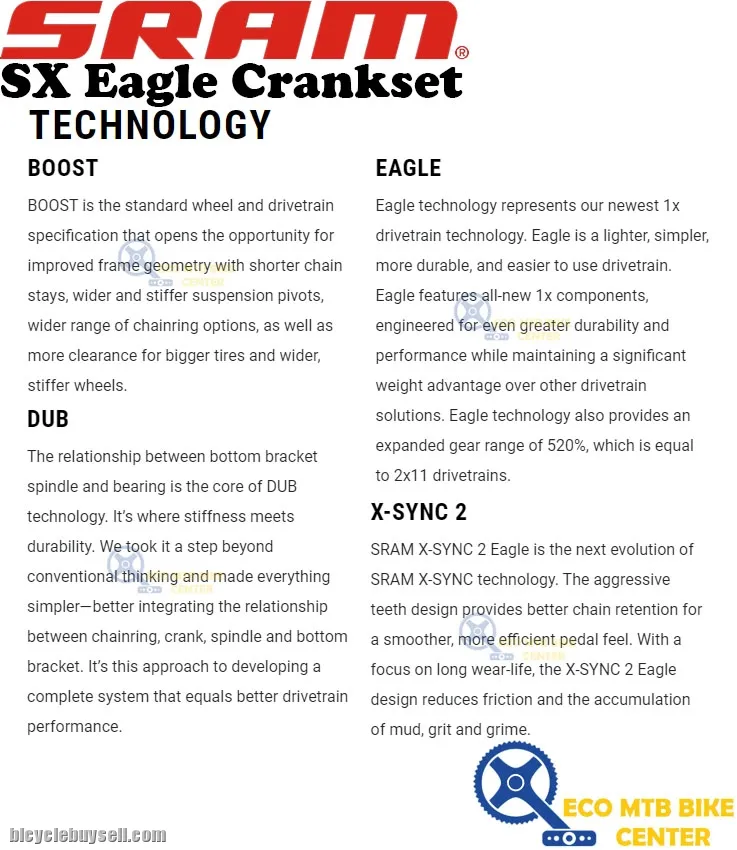 Multiple price-point options to allow you to hit the group price you need to build a better bike. Same chain retention performance as seen in all of the higher-level Eagle drivetrain cranks.