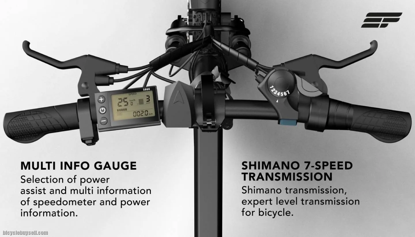 - Equipped with Shimano 7 speed gear shift. And comes with 3 level pedal assist.
