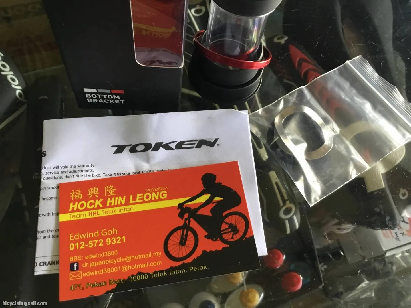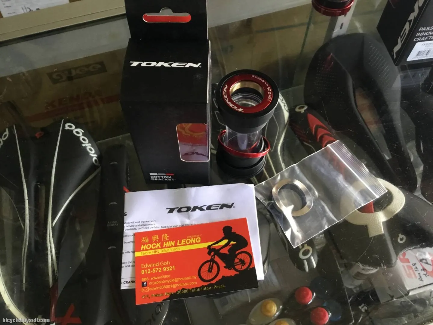 Token Titanium Tiramic/Ceramic BB. Pressfit bb. BB86/41mm. Shimano 24mm crank compatible. Product Description Token BB 841 PR -TBT (Titanium Ceramic) To make the BB841P a tough bottom bracket, we use the best materials. This means the shell is made from a combination of fibre and plastic. This allows us to machine it precisely and allows it to fit precisely in the frame and eliminate squeaks. It also provides a stable platform for the bearings and gives them a longer lifespan. In order to make this bottom bracket even more durable we use our patented X-Seals to keep moisture out while keeping drag to a minimum. It also includes a tube that further enhances water repellence. The optional ceramic TBT bearings are extremely hard making the rolling resistance low and saving you precious energy. And since these bottom brackets are hand-assembled, we can be sure that only the most precisely made bottom brackets are ever packaged and sold. Sure, it’s a lot of effort but details matter. Frametype :BB86 (ψ41x86.5mm)/BB89.5 / BB92 (ψ41x89.5 / 92mm) Crank Type: Shimano Free pos w.m. Sabah sarawak add Rm15. More details pls see picture. My shop at teluk intan,Pekan baru.beside pasar. If my phone switch off,pls email me.maybe I oversea,thx. Email:edwind38001@hotmail.com Tel:012-572 9321