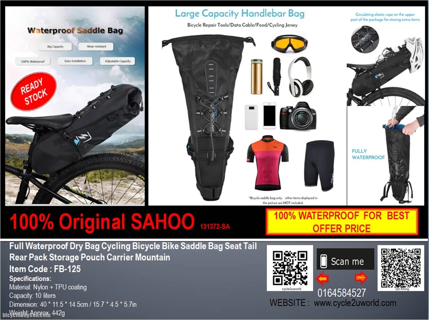 ORIGINAL SAHOO Waterproof Bike Saddle Bag 10L