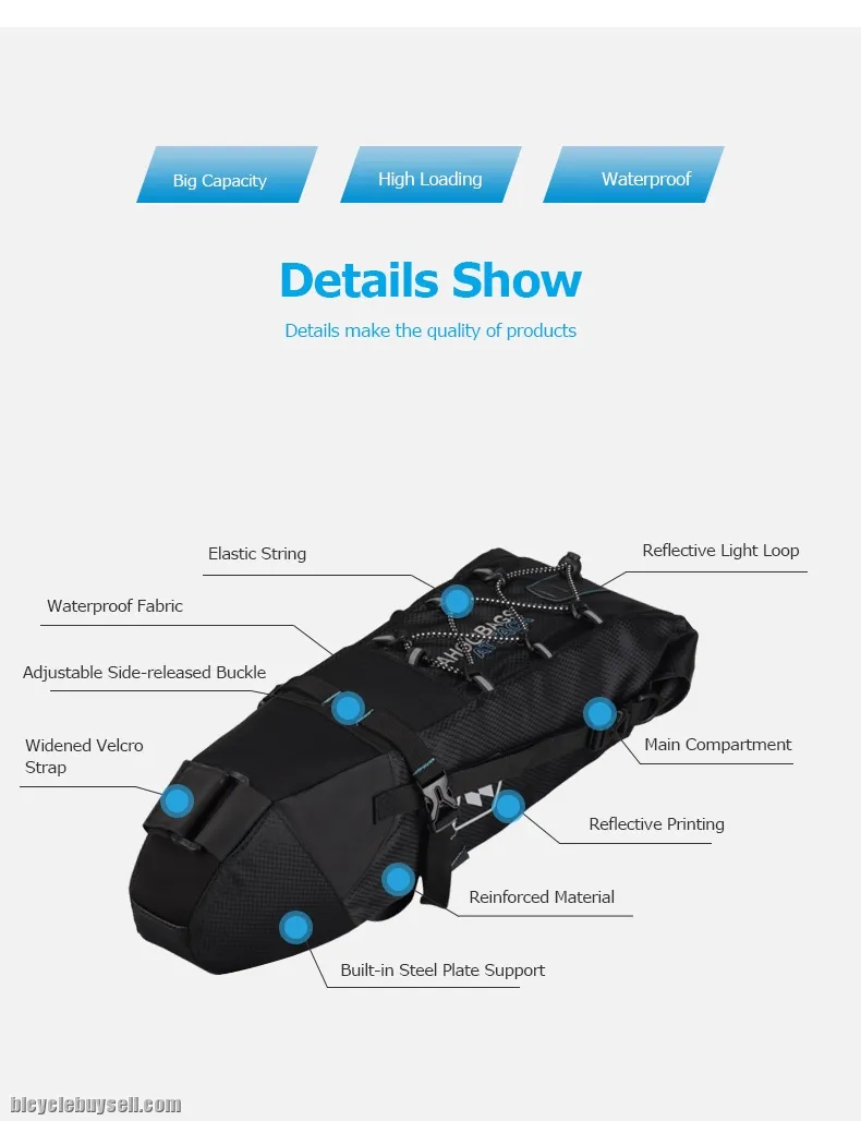 ORIGINAL SAHOO Waterproof Bike Saddle Bag 10L Tail Bag Storage Pack Bicycle Under Seat Bag