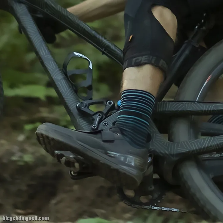 Massive instep strap securely holds foot to support aggressive pedaling over any terrain.