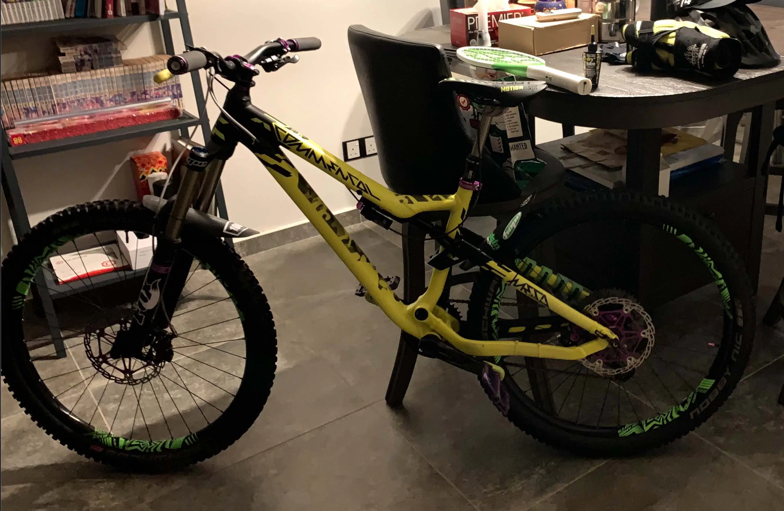 - Tyres: Schwalbe Magic Mary (Front), Nobby Nic (Rear) both 2.35