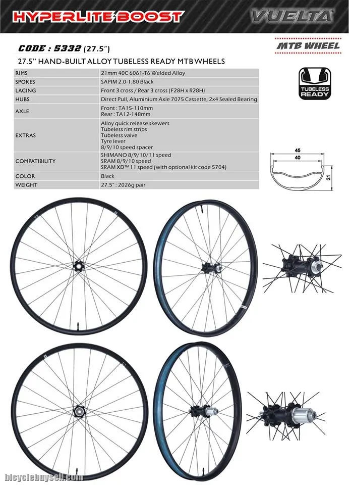 27.5 hand built alloy tubeless ready boost MTB wheels