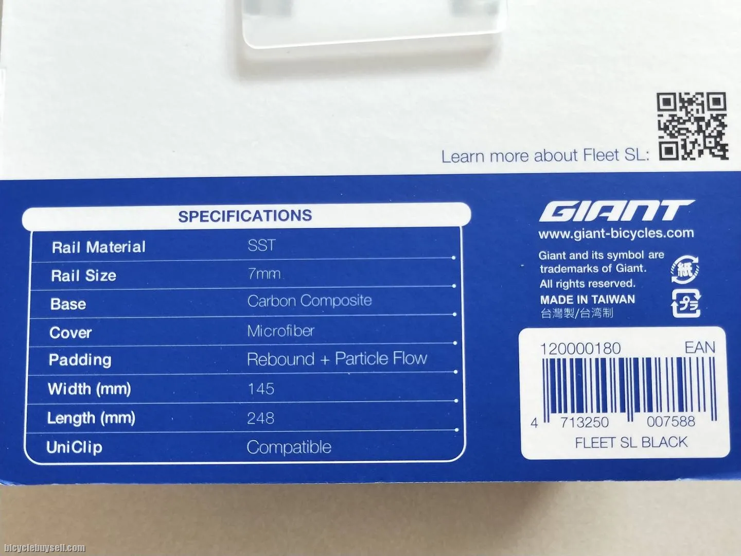 Giant Fleet SL SST Rails Carbon Base Road Bike Saddle Microfiber Black Uniclip