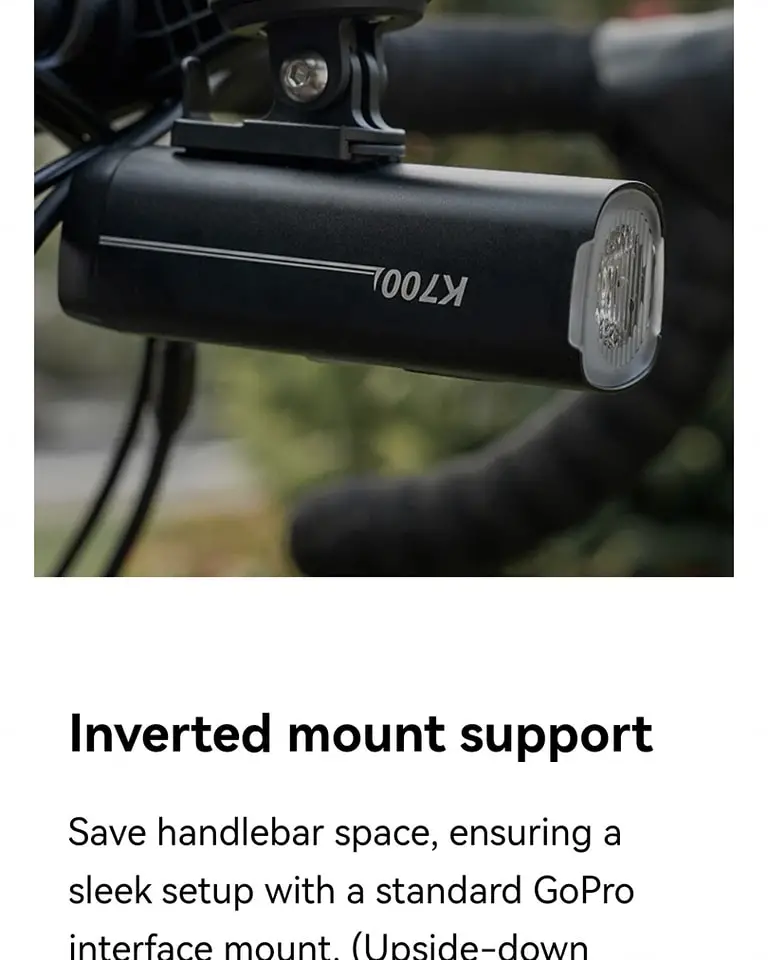 Experience the freedom and safety of the K700, a light-sensitive headlight that transforms your ride. Seamlessly adapting to changing ambient light, it automatically switches modes, allowing you to focus on the journey ahead. The uniform floodlight offers a broad and crystal-clear view, ensuring you see and be seen from every angle. Elevate your cycling experience with the K700, where innovation meets incredible lighting performance.