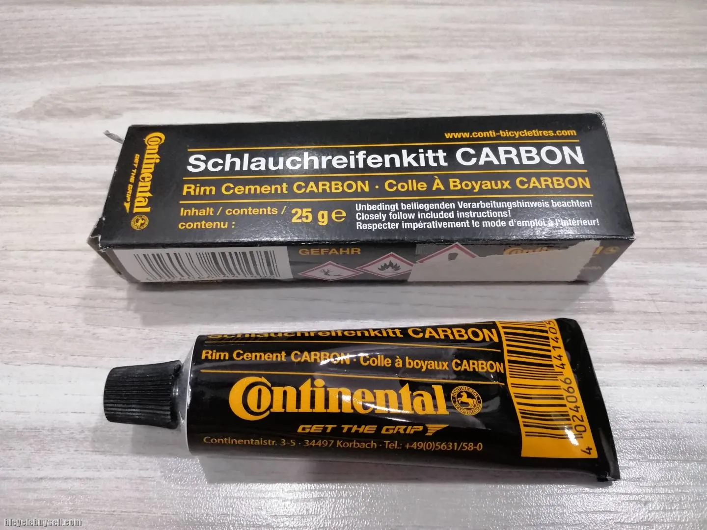 Continental rim cement for tubular tires on carbon rims. Brush inclusive. Carbon rims have different material characteristics and thermal conductivity compared to aluminium rims. This special rim cement was developed for the use with carbon rims, in order to prevent bouncing tires at long downhills - 25 Gram Can - For tublars with carbon rims - Remains hard even at high temperatures rm8 postage to peninsular malaysia rm15 for Sabah & Sarawak COD Petaling Jaya SS2 interested sms or whatapp me 016-249 1052 http://bicyclebuysell.com/#!brand=&page=1&priceFrom=&priceTo=&search=davidcheng&tab=search