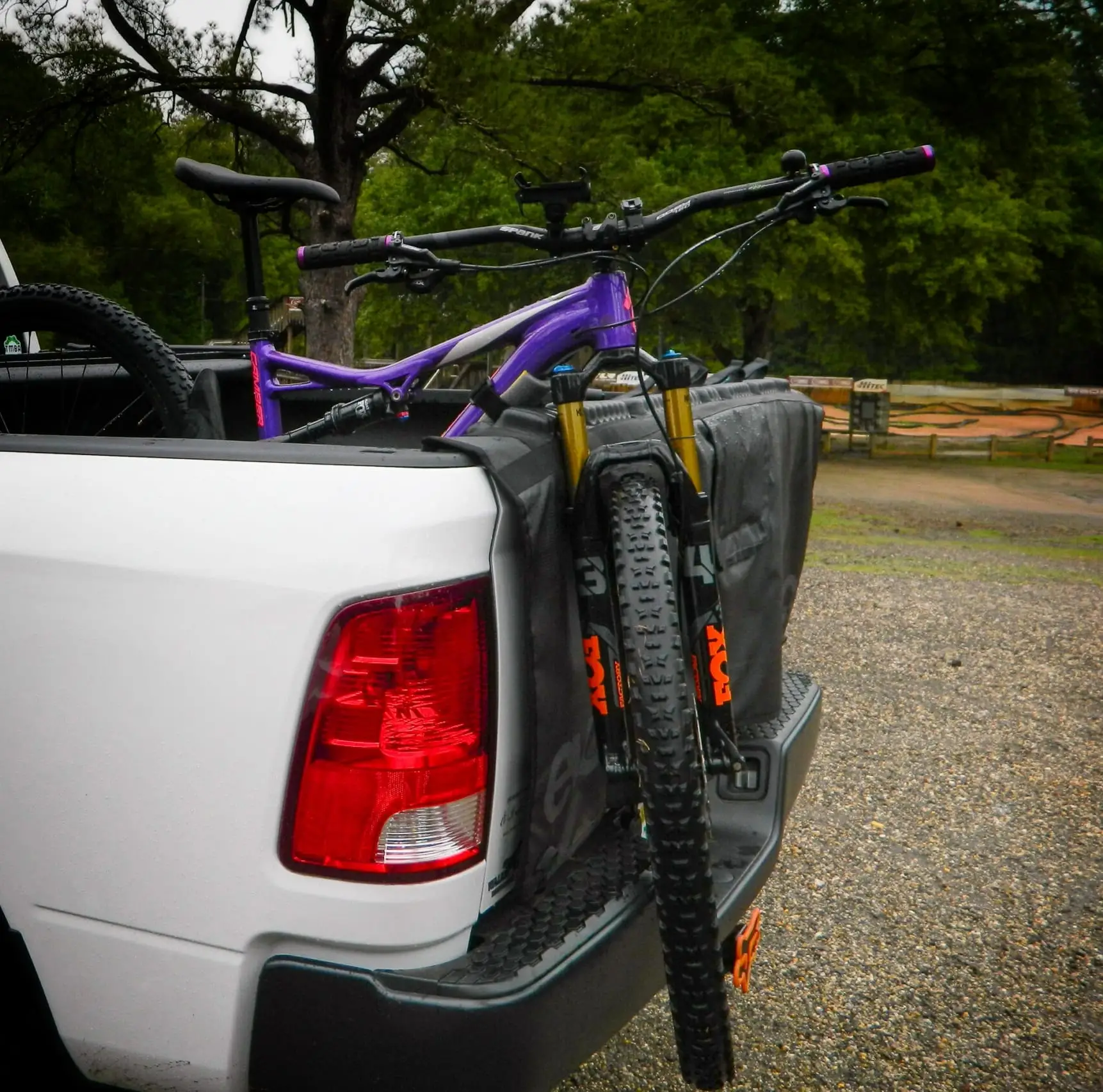 Shuttles have never been easier thanks to the EVOC Tailgate Pad. Offered in two sizes for both mid and full-size pickups, this pad features a fold-away rear camera flap, velcro frame loops and foam protection to keep everyone's bikes securely fastened on the way up that bumpy back road.