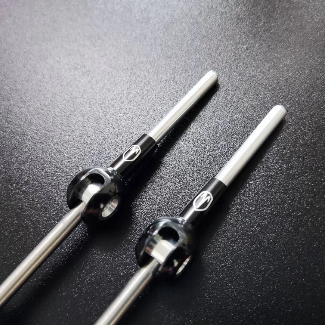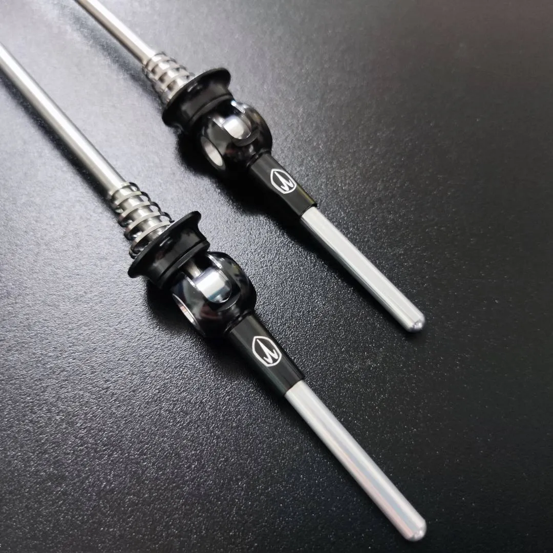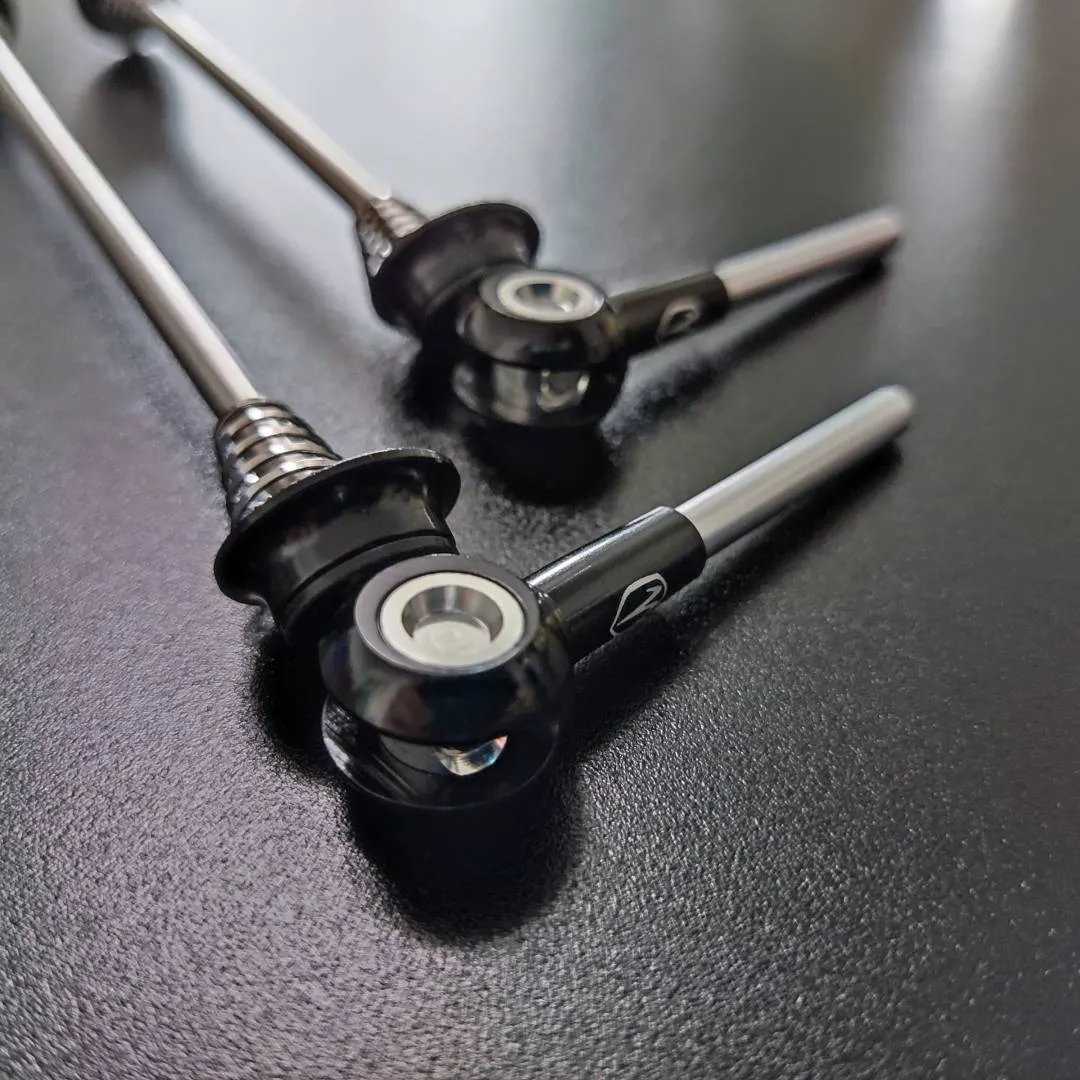 Utilizing an aerospace-grade 6AL/4V Titanium rod and 6061 aluminium hardware to produce a very light , and durable alternative to your stock quick-releases