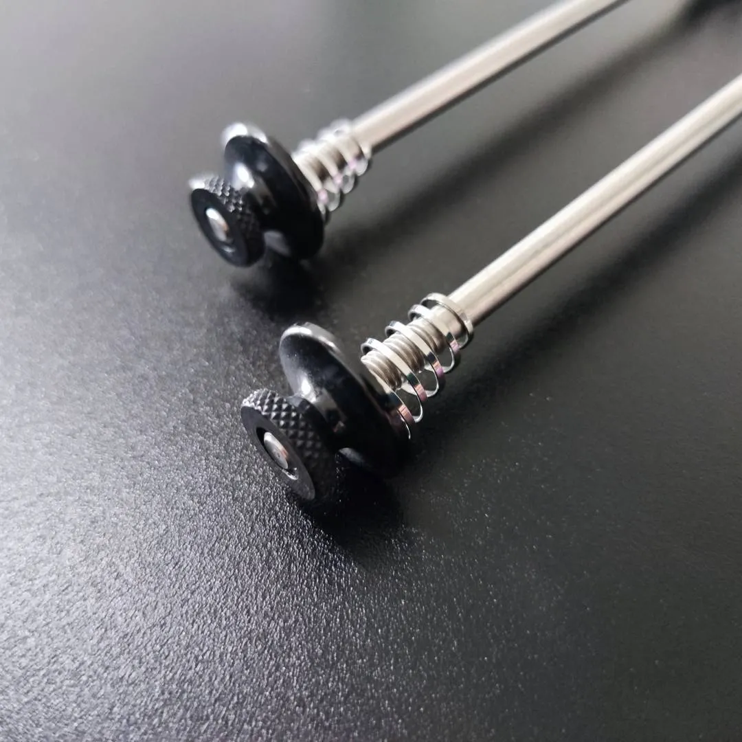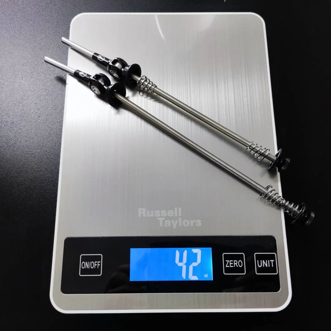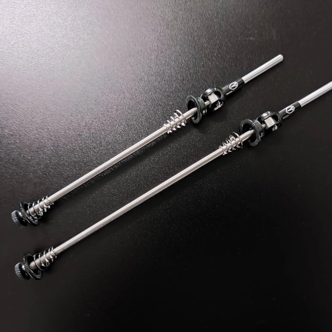 Utilizing an aerospace-grade 6AL/4V Titanium rod and 6061 aluminium hardware to produce a very light , and durable alternative to your stock quick-releases