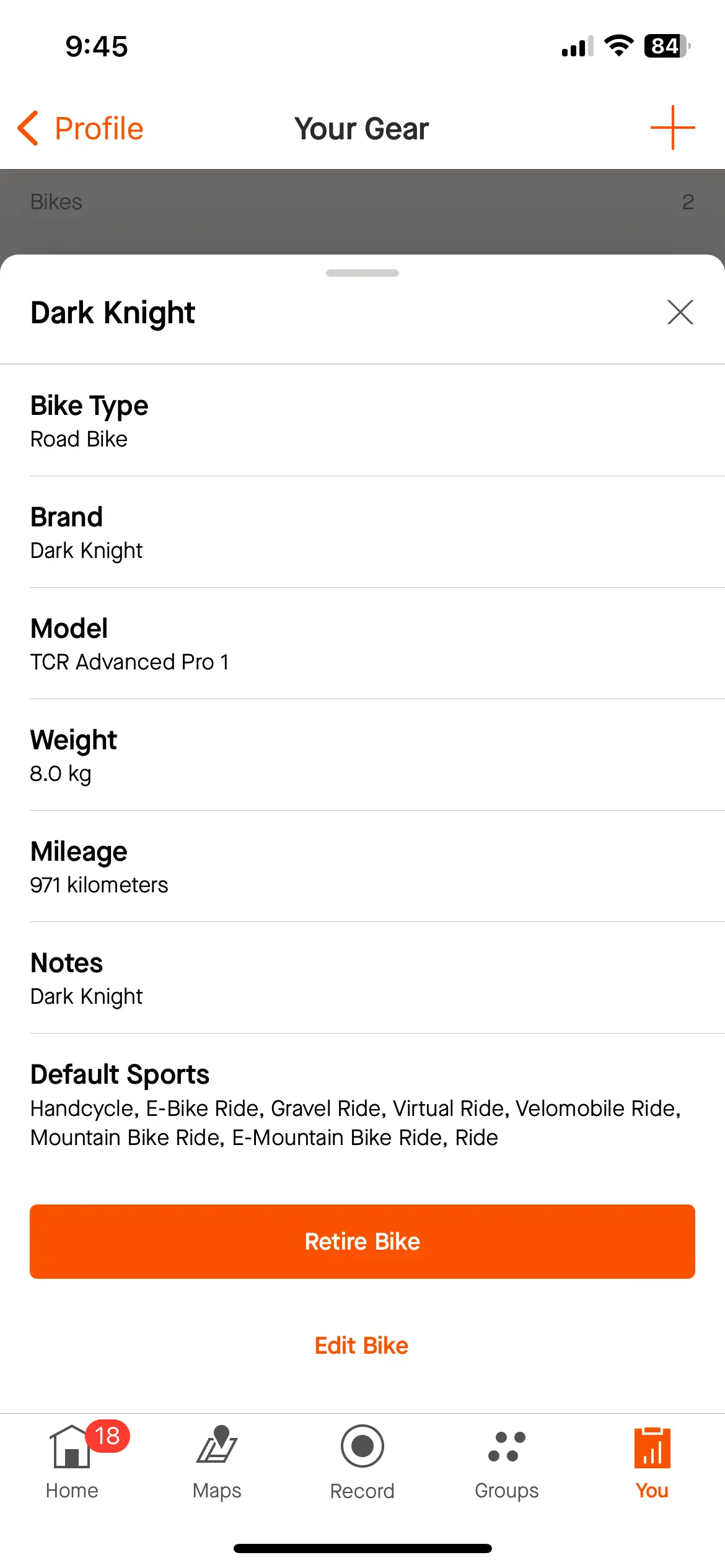 Total distance used just under 1000km. See strava.