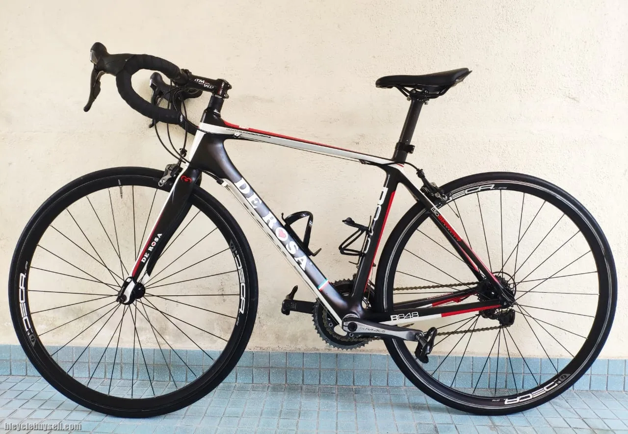 Letting go this very low mileage rare De Rosa R848, its light and fast Carbon road bike, with pleasant and unique design.