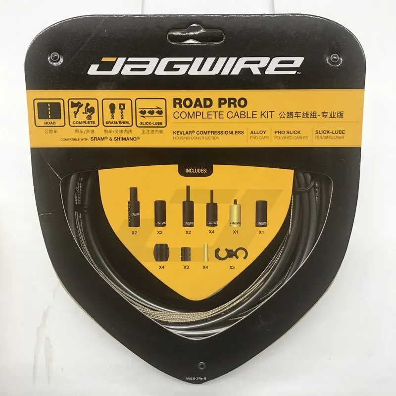 Jagwire’s Road Pro Complete Cable Kit Jagwire’s Road Pro complete cable kit (formerly Jagwire Racer) is the perfect way to add some color and performance to your Shimano® or SRAM® road/cross bike. Teflon® coated cables used with Jagwire's slick-lube liners dramatically reduces friction while Kevlar reinforced, compressionless brake housing provide smooth and powerful braking performance. And with all needed parts included, Jagwire's Road Pro kits are easy to install and set to deliver miles of smooth, durable performance. Derailleur Specifications Housing Construction:LEX or LEX Braided w/Slick-Lube Liner Compatibility:SRAM®/Shimano® Road Front Cable Length:2300mm Rear Cable Length:2300mm Housing Length:1700mm Cables:Teflon® Coated Slick Stainless Outside Diameter:Solid Color 4.0mm, Braided 4.5mm Small Parts: 4 Lined End Caps 1 Sealed End Cap 1 Hooded End Cap 6 Cable Donuts 2 Mini Tube Tops 2 Cable Tips Brake Specifications Housing Construction:Kevlar® Reinforced w/Slick-Lube Liner; Compatibility:SRAM®/Shimano® Road; Front Cable Length:850mm; Rear Cable Length:1650mm; Housing Length:1700mm; Cables:Teflon® Coated Slick Stainless; Outside Diameter:5.0mm; Small Parts: 2 Open End Caps; 2 POP End Caps; 2 Lined End Caps; 3 Cable Donuts; 2 Mini Tube Tops; 2 Cable Tips; 2 EZ-bend Segments. Deliver to Malaysia, SG, Brunei, Worldwide Accept Ewallet TouchnGo, installment & Credit card How to Order 1.Product Option: 2.Quantity: 3.Color: 4.Name: 5.Address: 6.Contact number: Send to ☎FB http://m.me/icebikeheaven ☎ http://www.wasap.my/60174204398 Sales, Order, Customer service ☎ http://www.wasap.my/60195272398 After sales/ Warranty FOLLOW US ✔ https://www.ebay.com/str/icebikeheaven37 ✔ https://shopee.com.my/icebikeheaven?tab=shop ✔ http://www.lazada.com.my/ice-bike-heaven/ ✔ https://fb.me/icebikeheaven ✔ https://www.instagram.com/icebikeheaven37/ Buy from Us! 🚴🏻💯% POSITIVE FEEDBACK 🚴🏻💯% Warranty & After Sale Service 🚴🏻💯% PARCEL ARRIVAL GUARANTEED 🚴🏻💯% ❌hidden charges 🚴🏻 7️⃣ days size exchange 🆗 🚴🏻 7️⃣ days 100% 💲💲 Guarantee back ☄ Prompt response 🥇♞ SSM Registered company- Icebikeheaven 🥇 8 Years of experience Bicycle shop or want to dropship? pm us now!