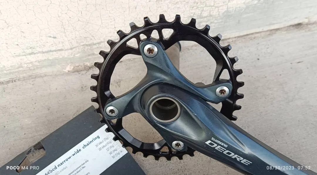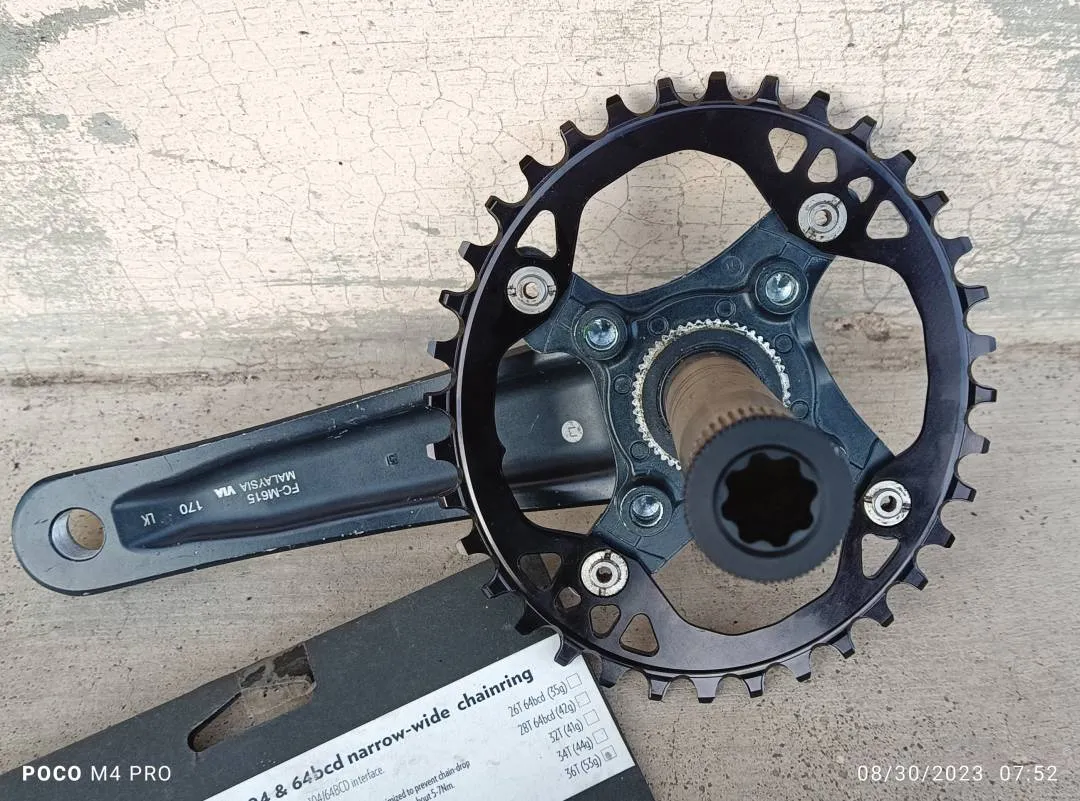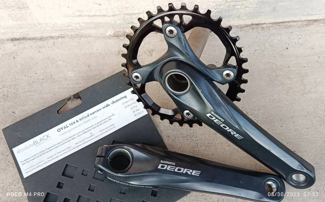 New Absolute Black Oval 36t Chainring pair with Shimano Deore M615 Crankset