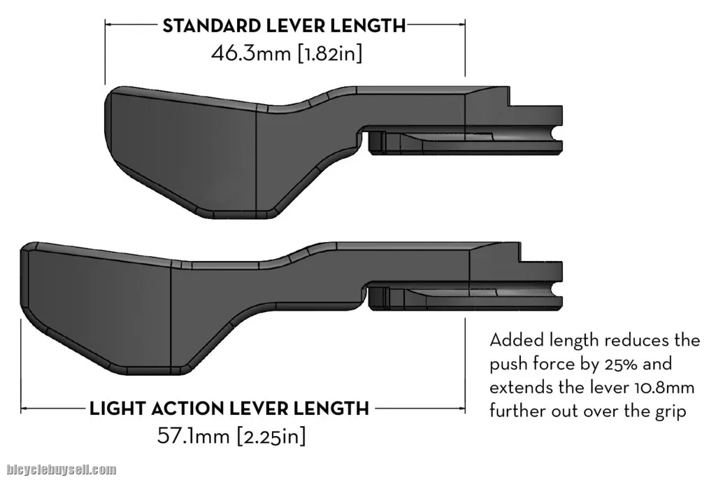 Low-profile, Light Action lever: The ReMote LA lever sits close to the bar, minimizing the distance the thumb must be removed from the grip while reducing the likelihood of knee contact in technical terrain and adds a bit of extra length to overcome stiff dropper internals.