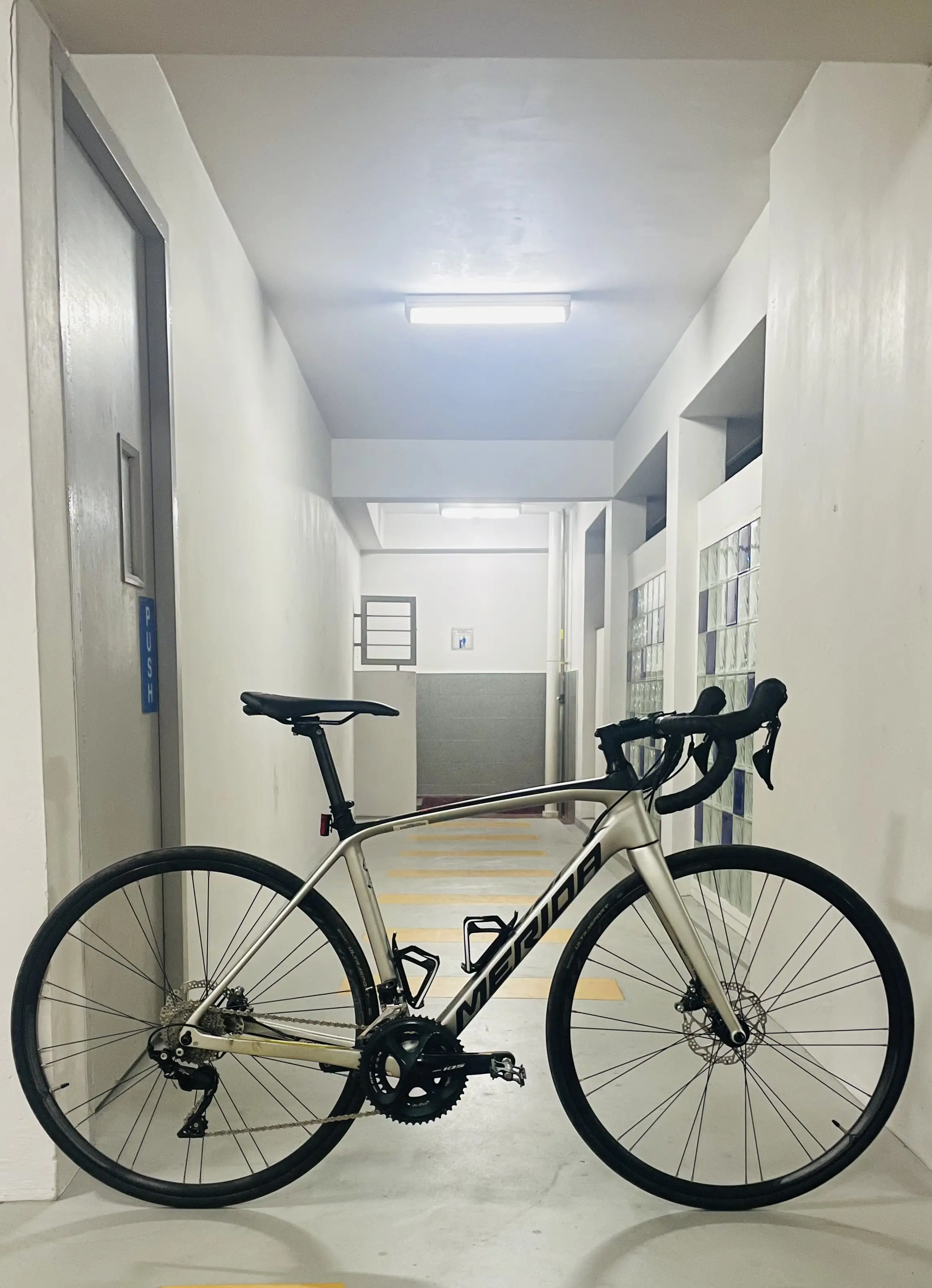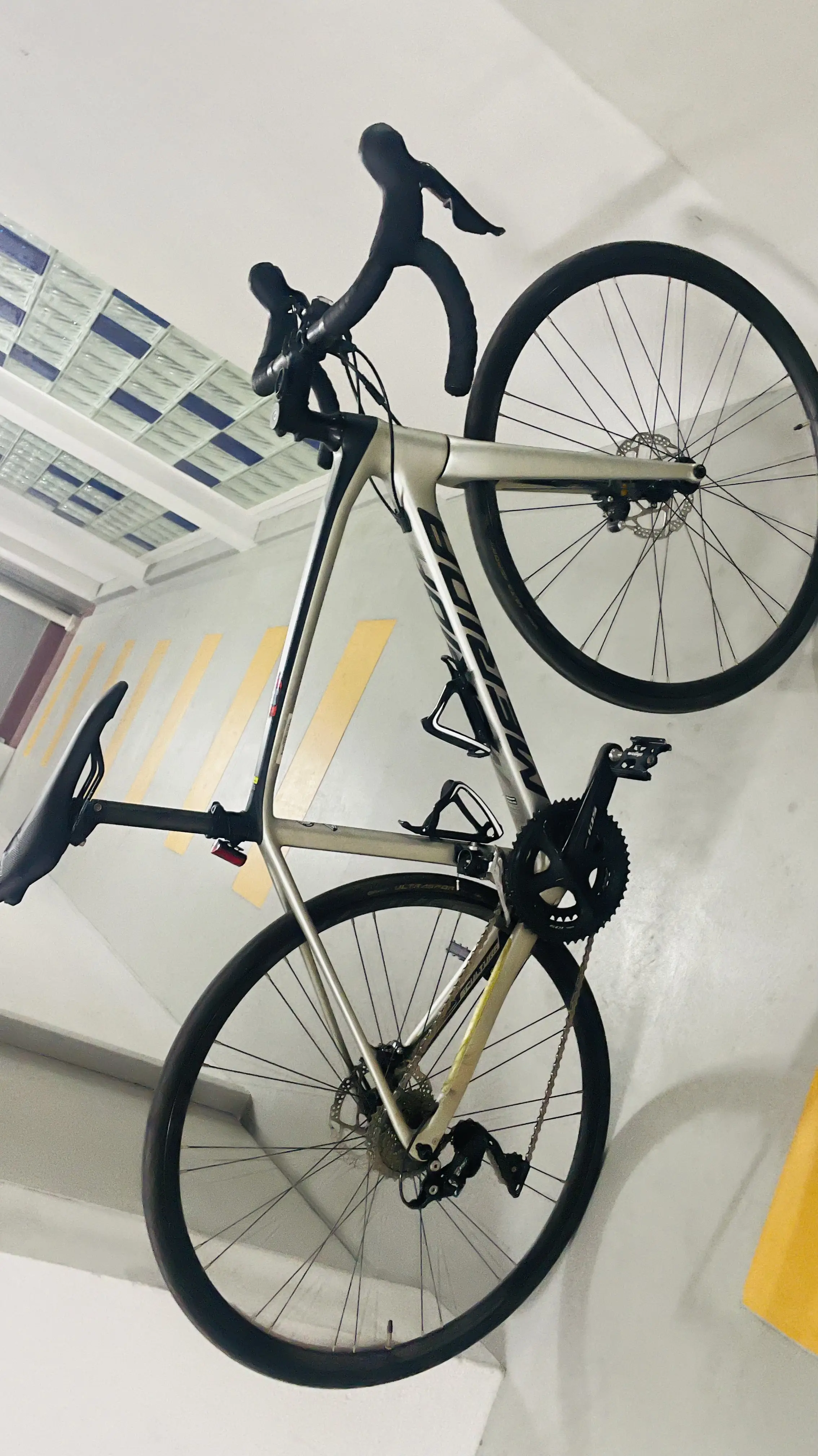 Full carbon build not aliminium frame type. Still in pristine condition, super little mileage and new bartape will be given as the bike has been sitting in the house ever since. New ultegra chain has been installed too and tuning done at bike shop. Almost no scratches not that Im aware of. Bike looks titanium at certain lighting angles which is sweet!