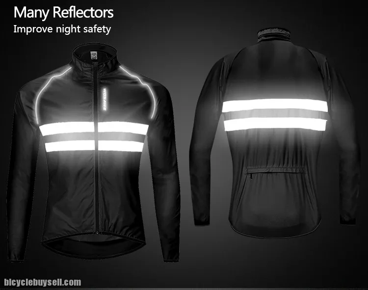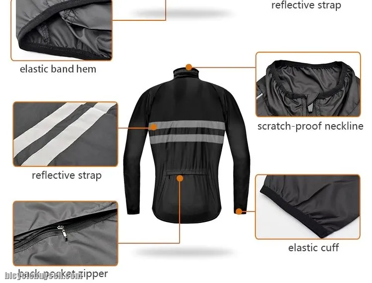 It keeps some of the wind off but allows enough air permeability to keep you well ventilated and dry; It helps keep out splashes or light rain; 4cm Width reflective strips offer safe cycling&Jogging at night.