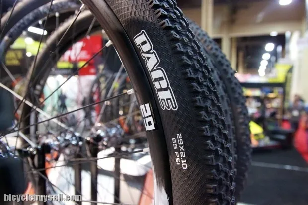 The Maxxis Pace is a new XC tire that was announced earlier this year and by the looks of it, this one is a fast roller that should work well on hardpack. The tightly spaced, smallish knobs bring to mind the Small Block 8s, but with a more aggressive bite. I love the braided sidewall detail, though Im told its mostly just for looks.
