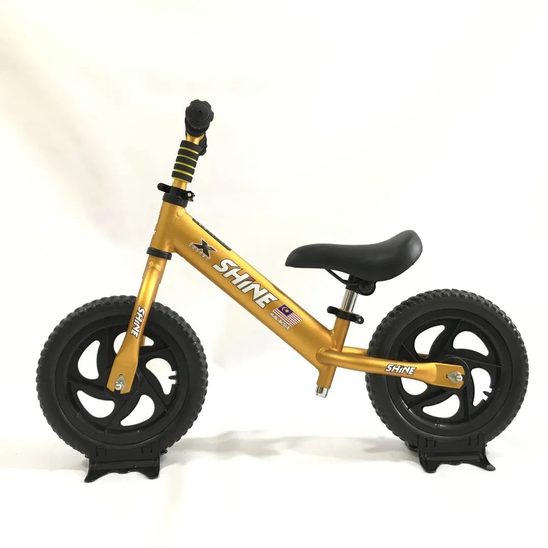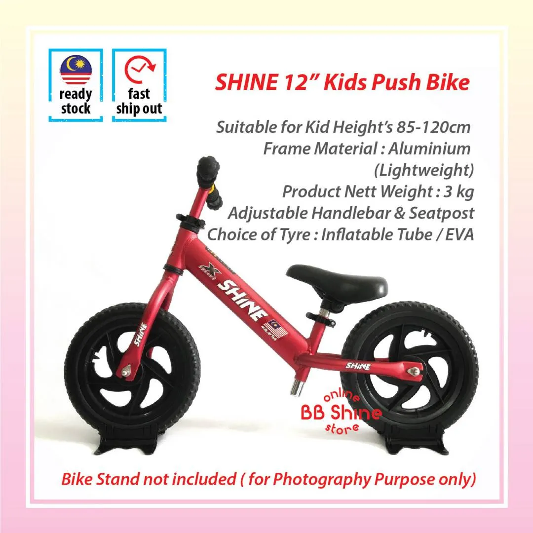 STOCK CLEARANCE SHOPEE LINK : https://shopee.com.my/Shine-12-Push-Bike-Balance-Bike-(Aluminium-frame-lightweight)-i.53961976.7637692159?sp_atk=ff93da58-0f99-4951-9c43-b7b601c4d154 Kita Anak Malaysia! Limited ready stocks available now!!! Unbelievable Lowest Introductory Price!! More affordable, save more money! With Adjustable Seat Post & Handle Bar, good for toddler age 2.5 - 5 years old or up to 35 kg.# Suggested kid height: 85-120cm Bike net weight 2 kg Available in colours : Red, Black, Orange & Blue Specifications: Padded seat Quick release clamp EVA Wheel Lightweight Learn to Ride! A No-Pedal Balance Bike is the perfect tool for learning to ride, teaching balance, and instilling riding skills in children. It is a ride by walking bike before they could ride on a pedal bicycle. It's so much fun besides training their legs on balancing, walking, running & cycling! Advantages of Riding a Push Bike : * Are ultra lightweight and easy to control * Increase balance, coordination, and confidence * Allow children to focus on learning balance first * Are free of chains, pedals, and protrusions that can harm a child * Provide a safe, smooth, and natural transition to a pedal bike #strider #pushbike #balancebike #runbike #kidbicycle #myfirstbike #startthemyoung