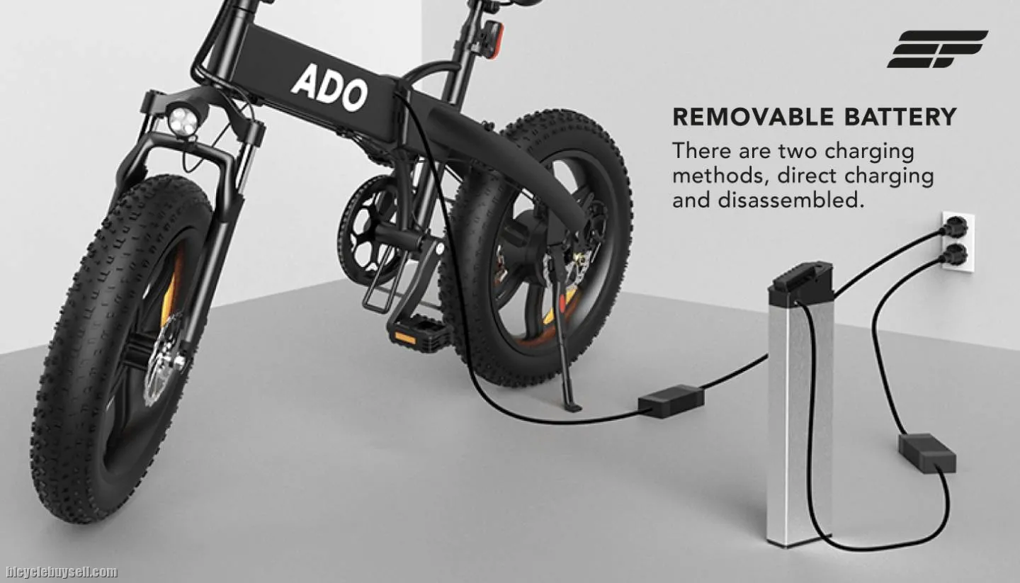 Electric Bicycle ADO A20F - LOCAL SELLER from Malaysia (1 year warranty) - ADO A20F bike is a great electric bicycle for traveling and adventure. - Fully foldable, can be placed in your car trunk easily. - Equipped with Shimano 7 speed gear shift. And comes with 3 level pedal assist. - Comes with throttle for full electric mode. -20 x 4.0 pneumatic fat tyres. Suitable for offroad areas. -Adjustable heights of handlebar and saddle for different heights of people. -Comes with front fork suspension. -Bright LED display. -Removable battery for charging. SPECIFICATIONS Overall dimension: 1740*530*1200 mm (unfolded) / 980*450*770mm (folded) Power: 250W norminal output 500W maximum output Battery: 36V 10.4AH Lithium Battery Charging time: 6-7 Hours Max distance: 40±KM (Pedal Assist Mode 80±KM) Max speed: 40 KM/H Brake type: Mechanical Disc Brakes Max load: 120±KG Tire size: 20" x 4" Fat tires Battery Indicator display: Yes Lights: Yes Shimano 7-speed gear shifter 3-gear adjustable power assist Suspensions: Front only Weight: 29KG Additional features *Front Fork Suspension *Bright LED Headlight with Horn *Shimano 7-speed gear shifting *3 level pedal assist mode *Foldable *Full LED display *20inch alloy rim *Removable battery **1 Year Limited Warranty based on Terms & Conditions** - No need license - No need road tax - Environment friendly Additional Items given: - Warranty Card & User Manual - Charger Call or whatsapp: +6016-2088 738 **Visit our shop** Waze or Google Map: Eforge Bikes