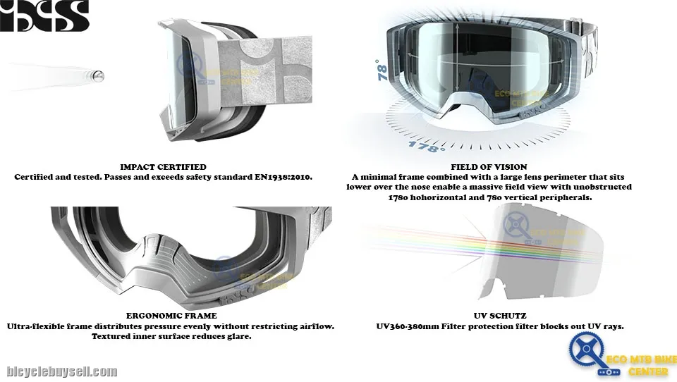 The Trigger goggle was developed and tested in close cooperation with iXS athletes. Its outstanding peripheral vision makes this goggle one of a kind. The Trigger features a simple lens handling, a large variaty of lenses and iXS Roll-Off/Tear-Off compatibility.