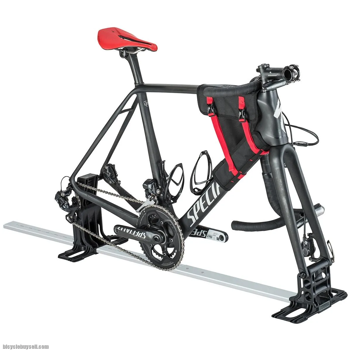 Multifunctional EVOC BIKE STAND for transporting your bike in our bike bags BIKE TRAVEL BAG and BIKE TRAVEL BAG PRO. Various mounting options enable the fastening of different bicycle types and bike sizes.