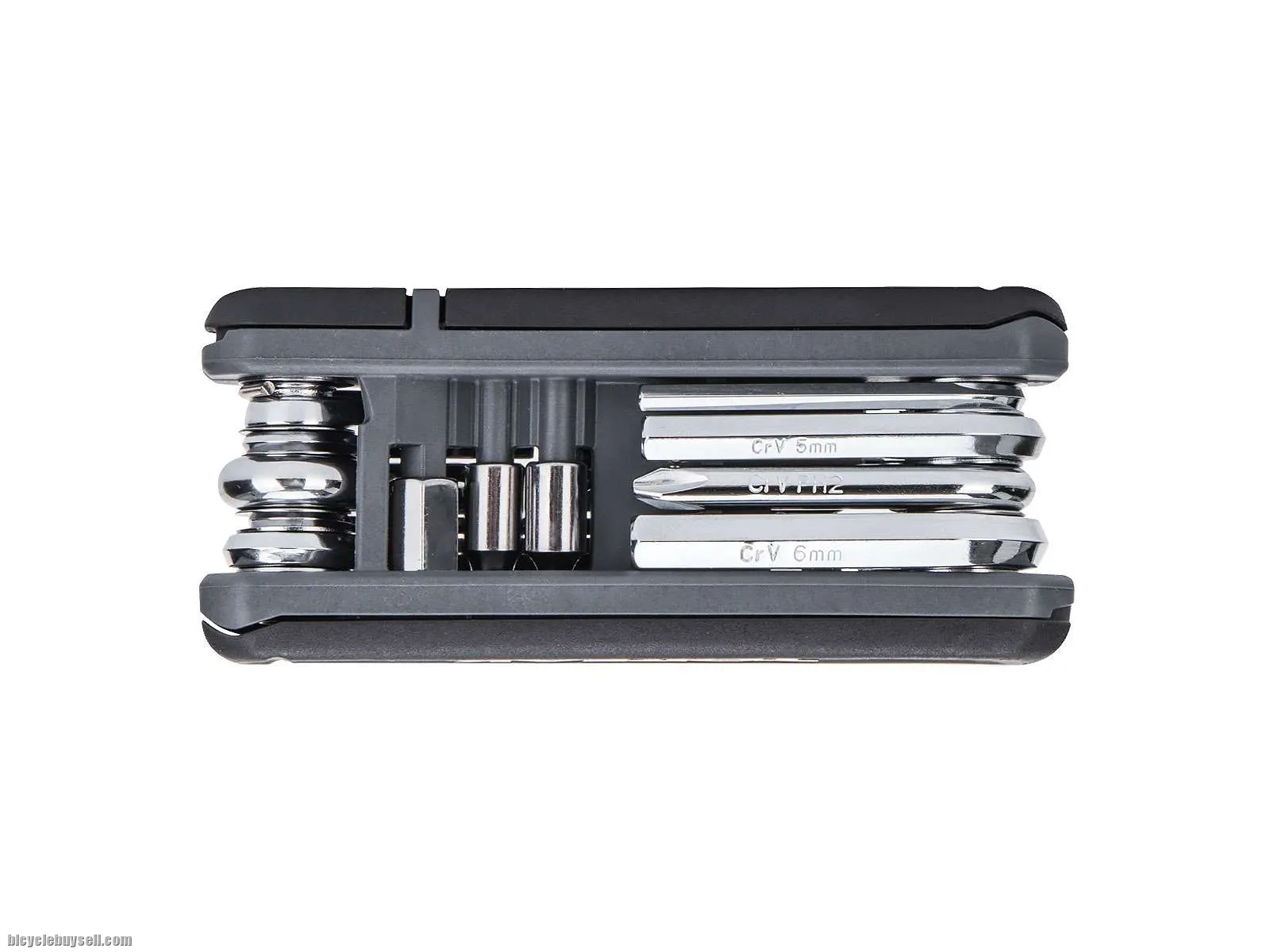 #2 Phillips screw driver, 14G / 15G spoke wrenches, steel wire chain hook, 2 engineering grade plastic tire levers, Presta Core Tool and CrMo steel chain tool