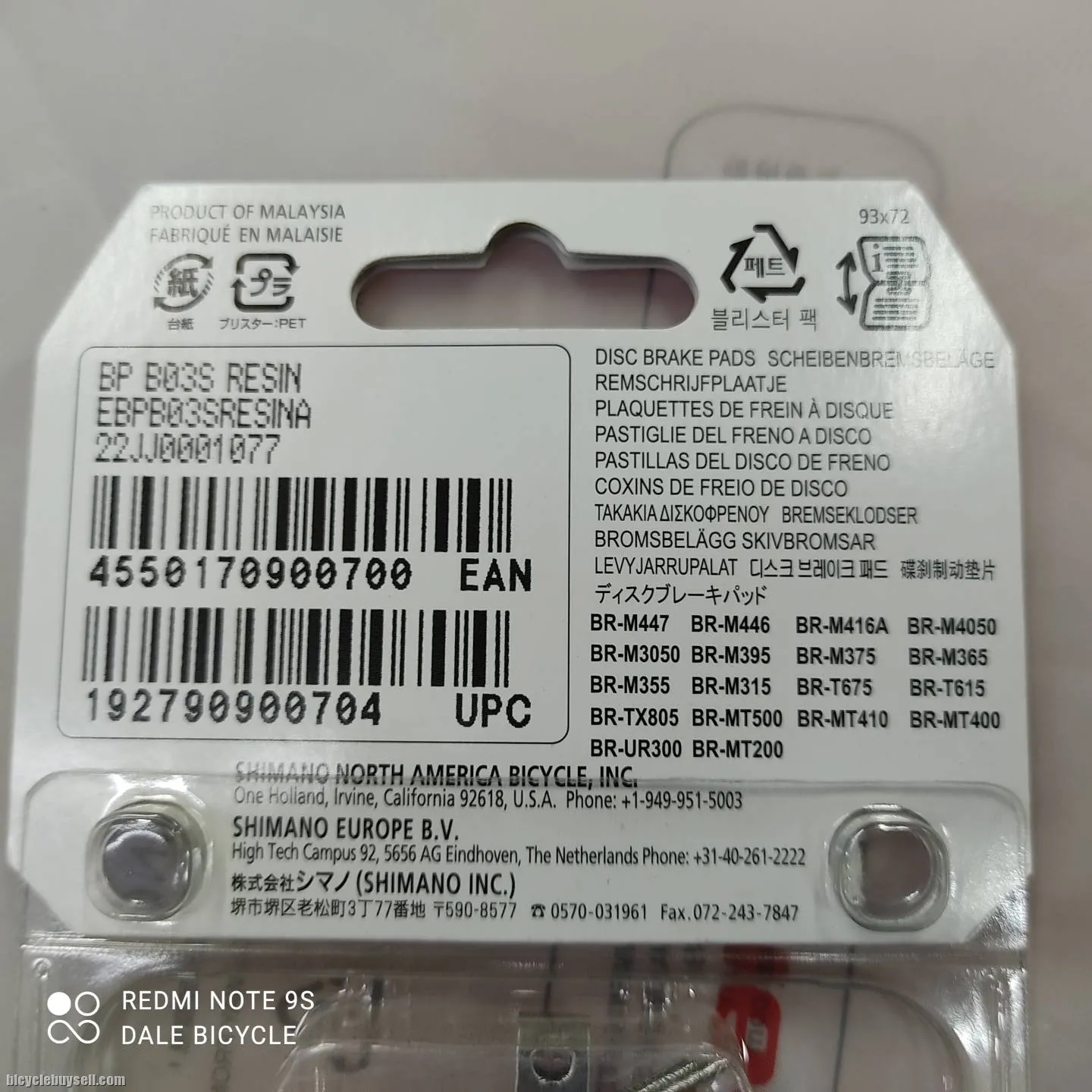 SHIMANO DISC BRAKE PADS B03S