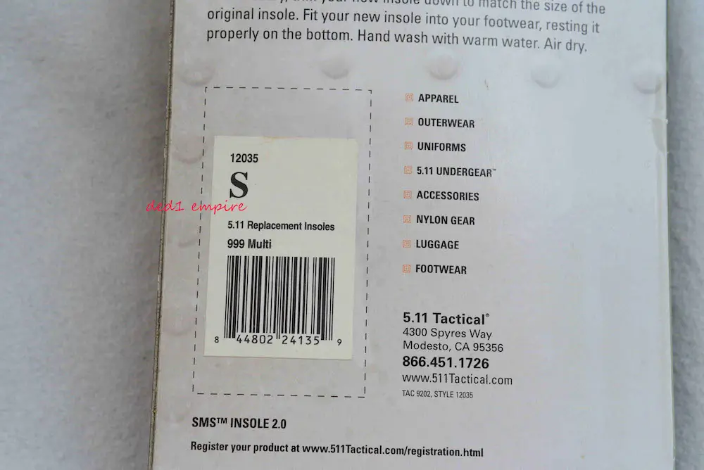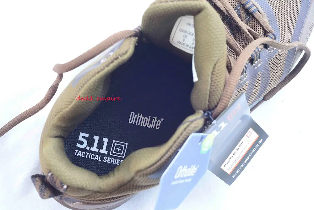 Keterangan: Pelapik kasut ini dibuat untuk semua jenis kasut keluaran 5.11 dan juga untuk sebarang jenama kasut anda. Ia dibuat dengan kerjasama Ortholite USA yang terkenal di serata dunia sejak 1997 (entiti ini diasaskan oleh Glenn Barrett) menggunakan teknologi mutakhir hasil R&D terbaik untuk sistem sokongan kaki manusia. Jenama pelapik Ortholite banyak digunakan sebagai OEM kepada pelbagai jenama kasut di seluruh dunia.