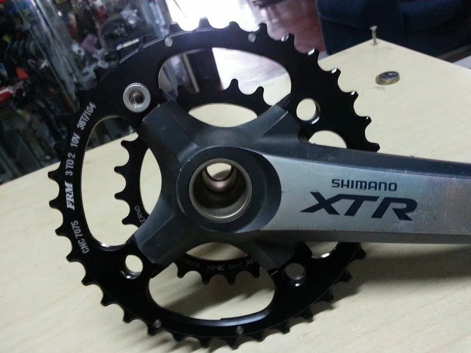 Convert triple or double cranksets with 104mm bolt turn into single with sprockets at 10 or 11v.