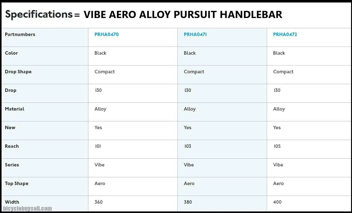 Designed to provide you with a better sports’ bicycle experience the PRO Vibe Aero Alloy Pursuit provides integration as a means to make aerodynamic gains. They take the Vibe aerodynamic design and add integrated internal cable routing to provide you with a clean and aero set-up. Available in three widths, each with a tuned reach and a 10-degree flare and 12-degree sweep to further enhance your ability to get into and hold an aerodynamic position on the bike.