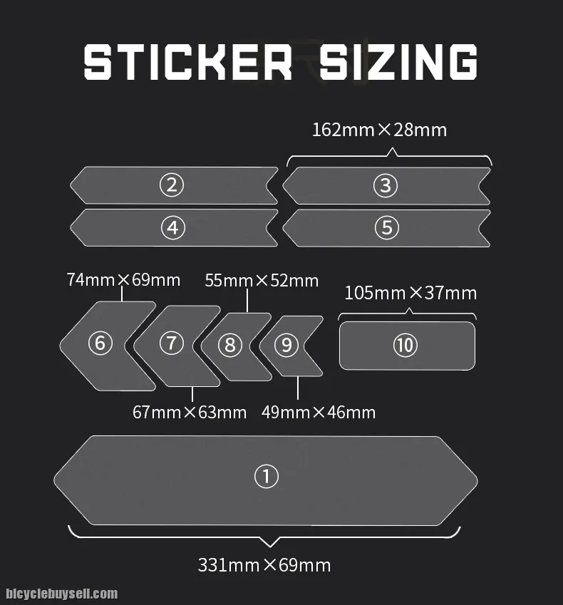 - Precut Ready 10pcs Different Sizing fit all Road Bike / Moutain Bike MTB, Total 10pcs Sticker