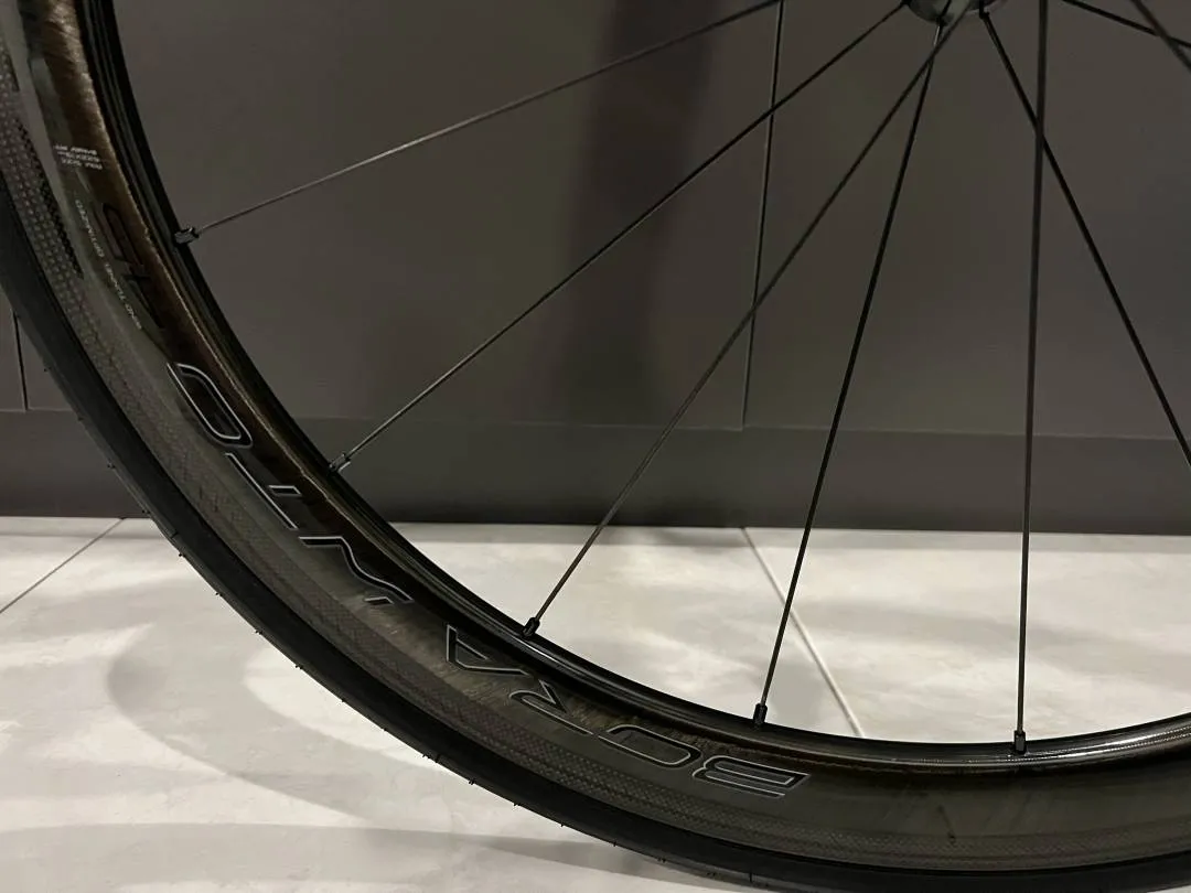 Wheelset: Campagnolo Bora WTO 45 Rim Brake (tubeless ready, used for 1 year) with Maxxis High Road SL tyres (3 months old)