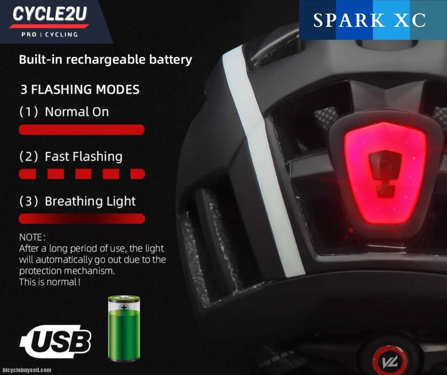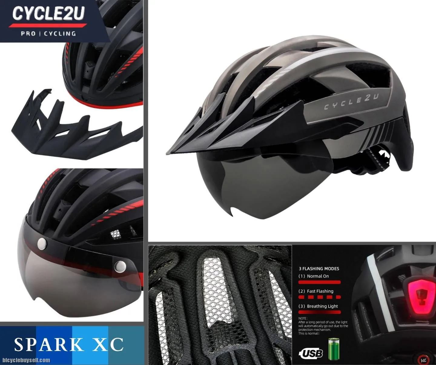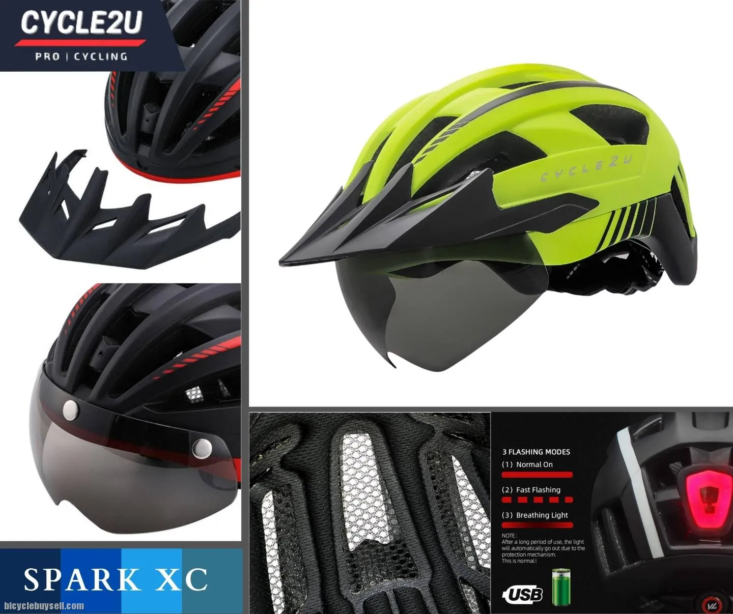 Genuine CYCLE2U SPARK XC Cycling Helmet Item Code: C2H04 Condition: 100% Brand New For purchase please click this LINK https://cycle2uworld.com/helmets/C2H04 shopee : https://shopee.com.my/%F0%9F%94%A5Ready-Stock%F0%9F%94%A5-CYCLE2U-SPARK-XC-LED-Backlight-Cycling-Helmet-Basikal-Helmet-Bike-Helmet-MTB-Roadbike-Helmet-Helmets-i.80489070.16813755841?sp_atk=c236f613-8984-4a9f-819d-52569b4709df&xptdk=c236f613-8984-4a9f-819d-52569b4709df Lazada : https://www.lazada.com.my/products/ready-stock-cycle2u-spark-xc-led-backlight-cycling-helmet-basikal-helmet-bike-helmet-mtb-roadbike-helmet-helmets-i2827968789-s13589699102.html?clickTrackInfo=query%253Acycle2u%252Bhelmet%253Bnid%253A2827968789%253Bsrc%253ALazadaMainSrp%253Brn%253Adc3839d04ea46ddc568611beb73498a8%253Bregion%253Amy%253Bsku%253A2827968789_MY%253Bprice%253A139.00%253Bclient%253Adesktop%253Bsupplier_id%253A1006%253Basc_category_id%253A10000903%253Bitem_id%253A2827968789%253Bsku_id%253A13589699102%253Bshop_id%253A17536&freeshipping=1&search=1&spm=a2o4k.searchlist.list.i6.217d5da98U9sBd Please Whatapps Me for the faster reply: http://www.wasap.my/60164584527 Wechat ID : QuickDial Website : http://www.cycle2uworld.com Show Room : 5-5-7 Hunza Complex, Jalan Gangsa, 11600 Penang. HIGH QUALITY GUARANTEE Specification: Scientific & Ergonomic design Ventilation: 20 Wind Tunnel vents with internal channeling, it could provide great using experience in air ventilation & heat dissipation One size: 57-61cm Integrated superbright 3 lighting warning modes USB rechargeable & IPX5 waterproof LED Rear Light Windproof & Strong Protection Magnetic Goggles, greatly protect your eyes and face filter the hard glare in the sun Equipped with a multidimensional regulation system, users can easily adjust the size not only up and down but also head perimeter for perfect sizing adjustment Certification: CE, EN 1078, CPSC Accessories Included: Integrated Backlight, Detachable Visor Feature: Material: High Density Polystyrene (EPS) as Inner support + PC, In-mold Construction Inner Pads: Washable comfort pads Adopted high density EPS structure, our helmet could strongly buffer the impact to protect your head Embedded keel skeleton core, it could provide excellent stability between helmets and head Detachable bugs net & sun visor, it could be your trustable guard to bugs and sunv Adjustable size regulator, the helmet could perfectly fits with your heads with easy adjustment The helmet stays steadily with head in the correct place with the help of the adjustable straps and multidimensional adjustment Large air vents design, it could provide great using experience in air ventilation & heat dissipation Streamlined integrated design,it could greatly reduce the wind resistance and improve the cycling performance Fashionable design, you could be the most eye-catching cyclist in the street Package includes: 1 x Genuine CYCLE2U SPARK XC Cycling Helmet 1 x Genuine CYCLE2U Helmet Bag
